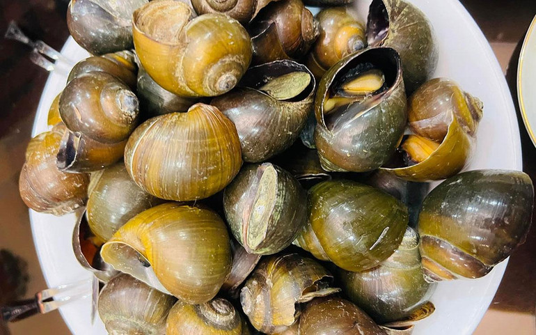 | Ốc nấu thả ăn cùng bún hoặc cơm. |