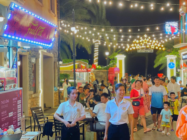 Mới đây nhất, “con đường ẩm thực và giải trí đêm” mang tên Sorrento khai trương ở phía nam đảo với hệ thống nhà hàng, quán bar đa dạng cũng là điểm thu hút khách đặc biệt. Dịp này, ba con đường đường dạo bộ giật cấp xuống sát mặt biển được trang hoàng lộng lẫy với đèn cam, cờ phướn rực rỡ.