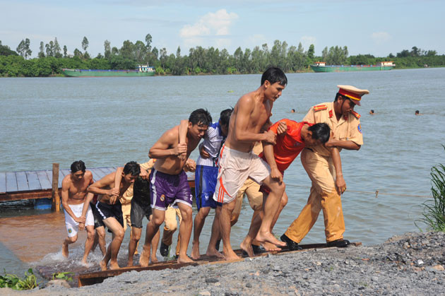 Đây là tình huống giả định trong phương án diễn tập bảo đảm ANTT, ATGT, cứu nạn, cứu hộ sự cố giao thông nghiêm trọng do thiên tai, bão, lũ năm 2016 do Cục Cảnh sát giao thông ( Bộ Công an) tổ chức vào sáng 7-6, tại Đồng Tháp.