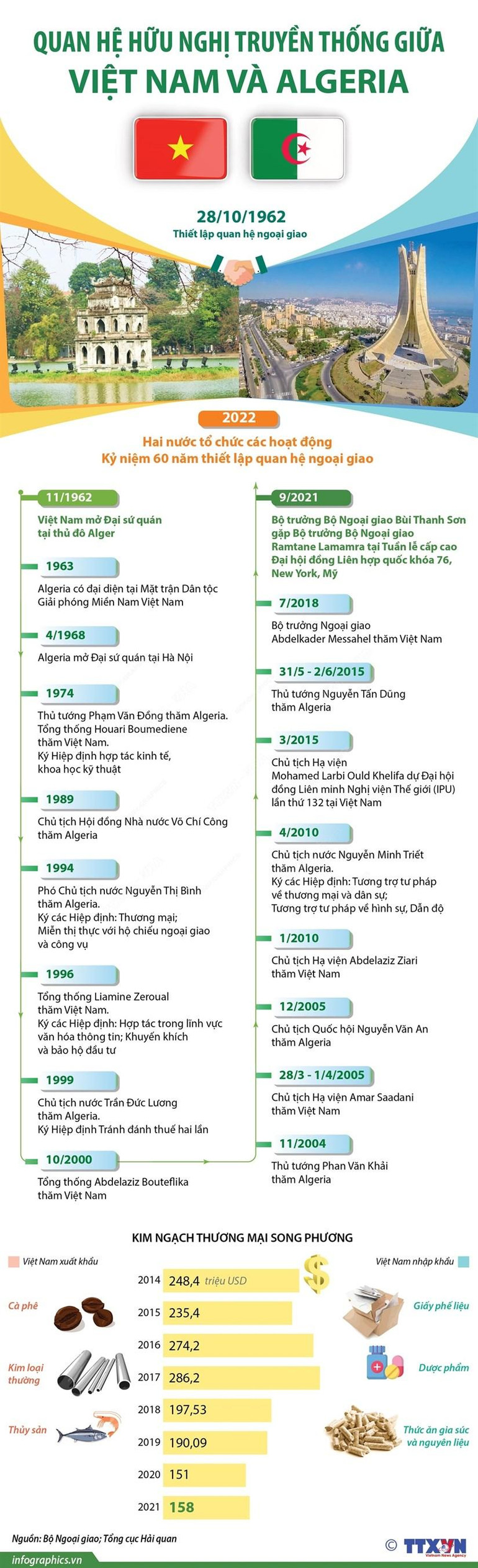 Cách đây 60 năm, ngày 28/10/1962, Việt Nam và Algeria đã chính thức thiết lập quan hệ ngoại giao.