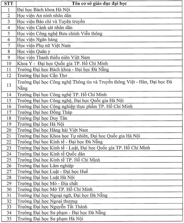 Danh sách 45 cơ sở đại học có đề tài vào vòng Chung khảo: