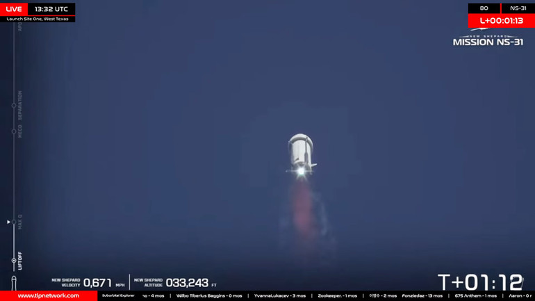 Vào lúc 8 giờ 30 phút tối 14/4 (theo giờ Hà Nội), tàu con thoi New Shepard đã rời bệ phóng tại Van Horn, Texas mang theo phi hành đoàn gồm 6 thành viên bay vào không gian.