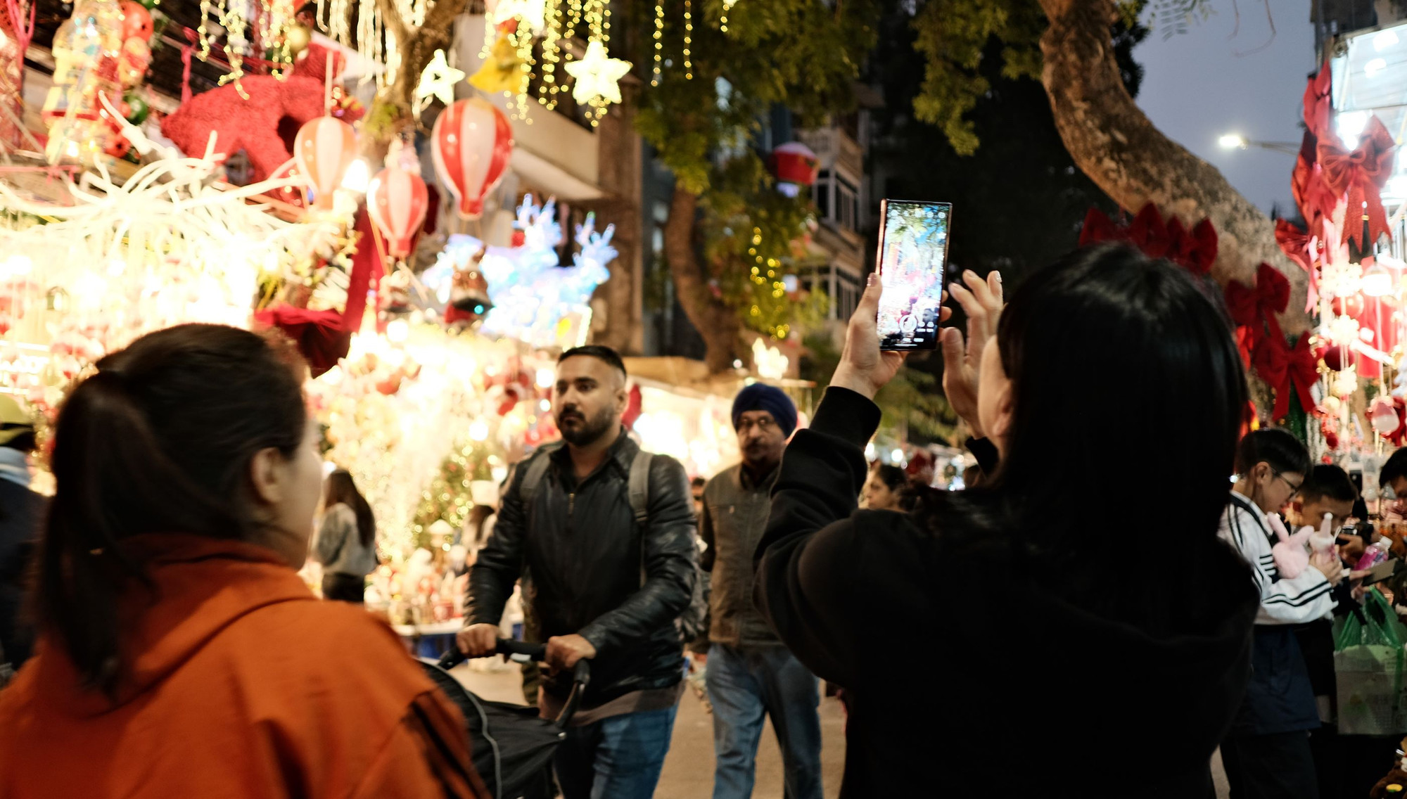 Phố Hàng Mã không chỉ là nơi mua sắm những món đồ trang trí Giáng sinh mà còn là “tọa độ vàng” cho những bức ảnh triệu like.
