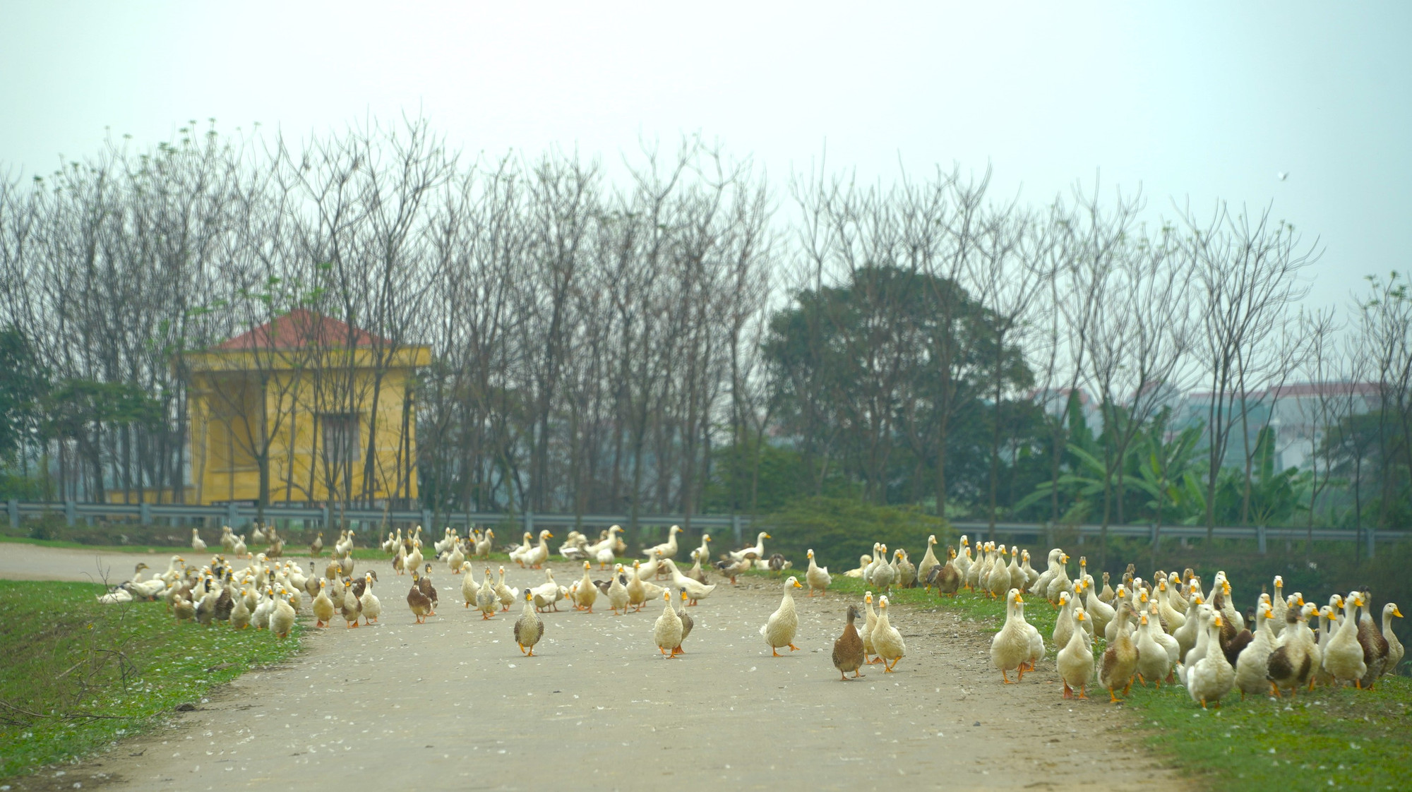 Trên đường di chuyển, chúng ta có thể dừng lại ở hai bên đường để chụp ảnh cùng những hàng cây, bãi đá dọc triền đê hay đơn giản là ngắm những... đàn vịt chạy kín đường và phải đợi du khách xuống lùa mới chịu di chuyển.