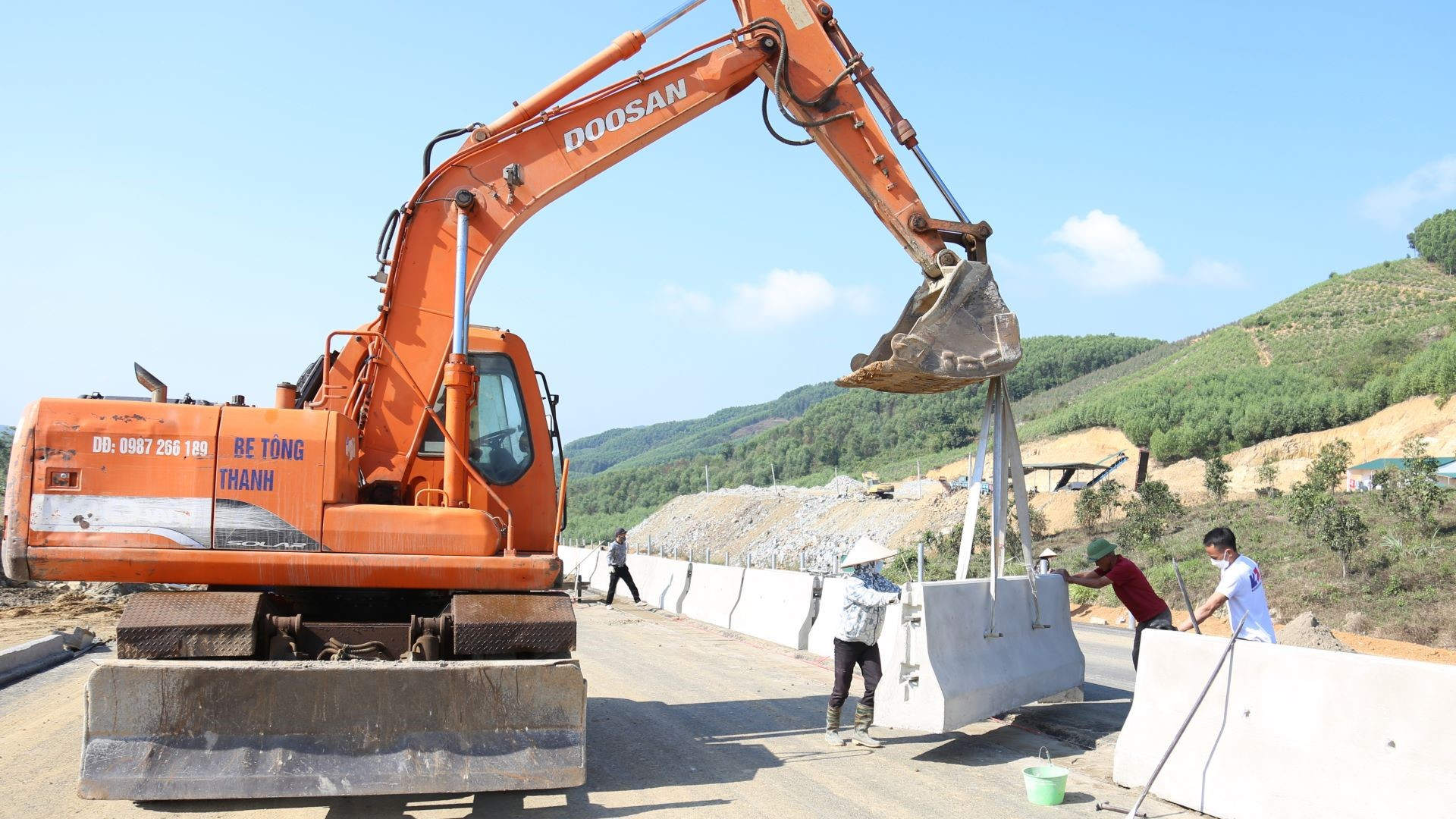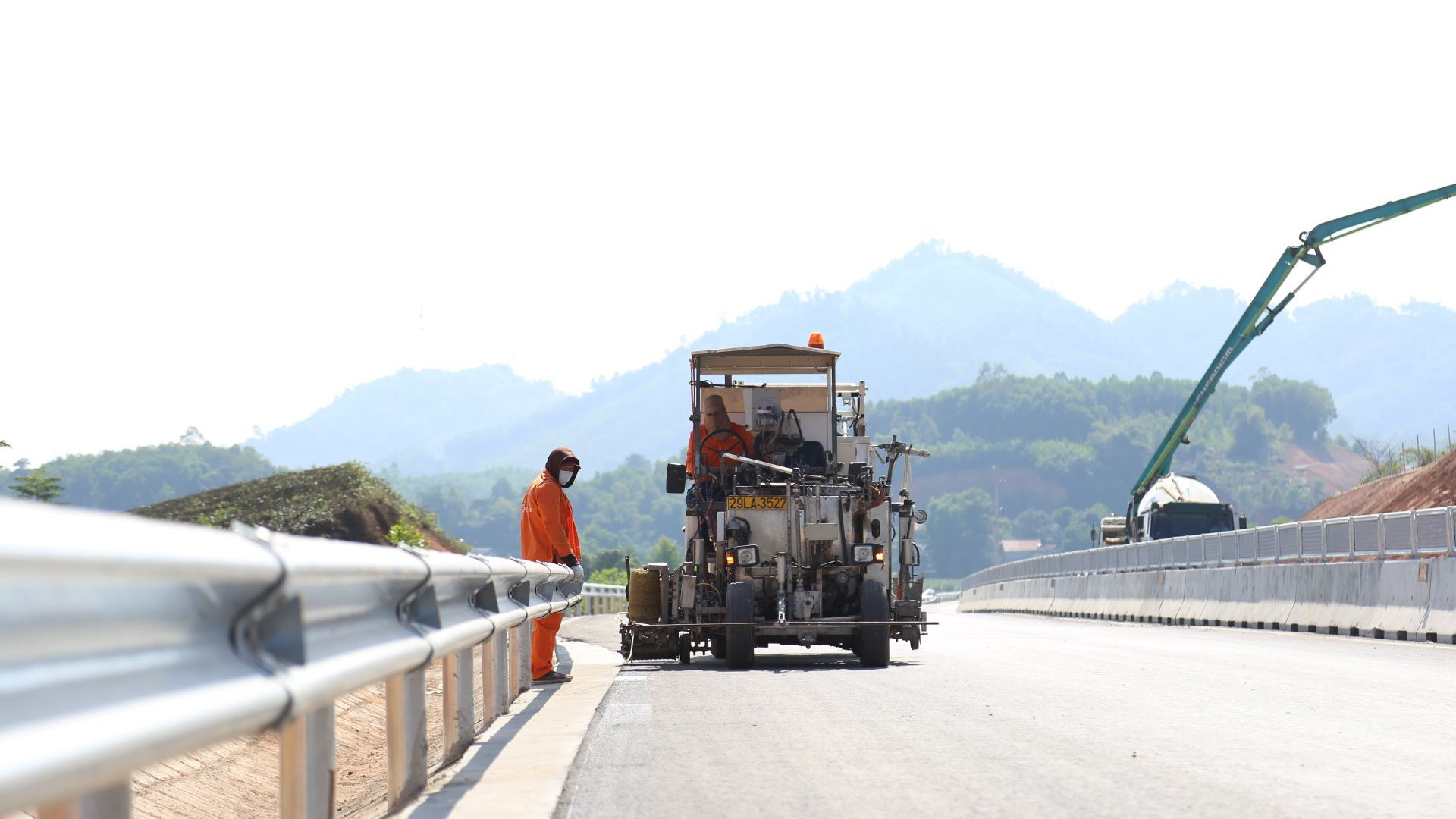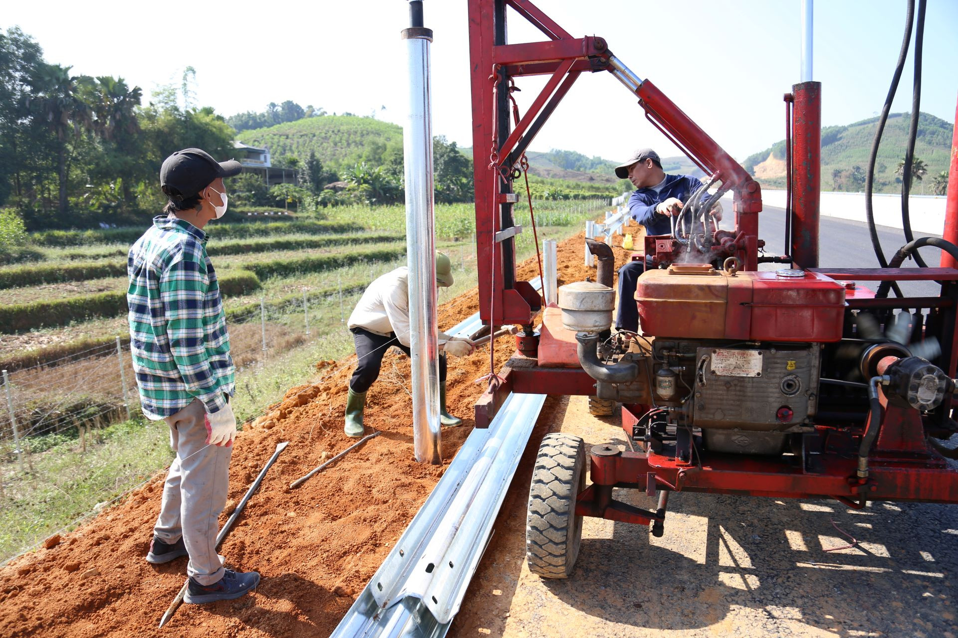 Một số công đoạn như lắp đặt dải phân cách giữa, thi công hàng rào bảo vệ ngăn với đường dân sinh, lắp đặt hộ lan đường, hoàn thiện hệ thống rãnh thoát nước, tiến hành sơn vạch kẻ đường đang được triển khai hoàn thiện.