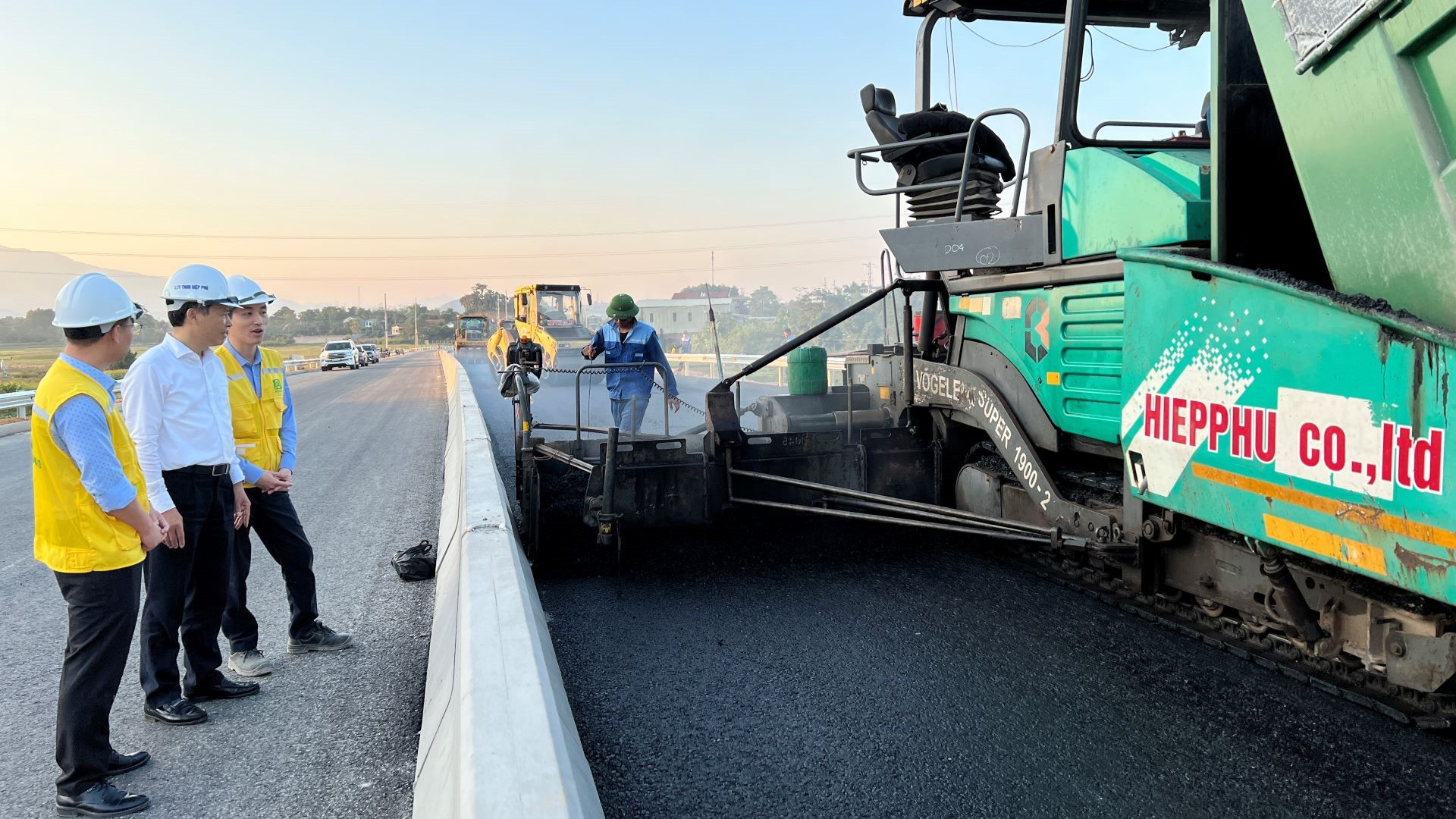 Đến nay, việc thi công các hạng mục chính đã cơ bản hoàn thành, hiện phần mặt đường đã cơ bản trải xong thảm nhựa. Chỉ còn một số đoạn đang tiến hành thảm lớp cuối là nhựa polime.