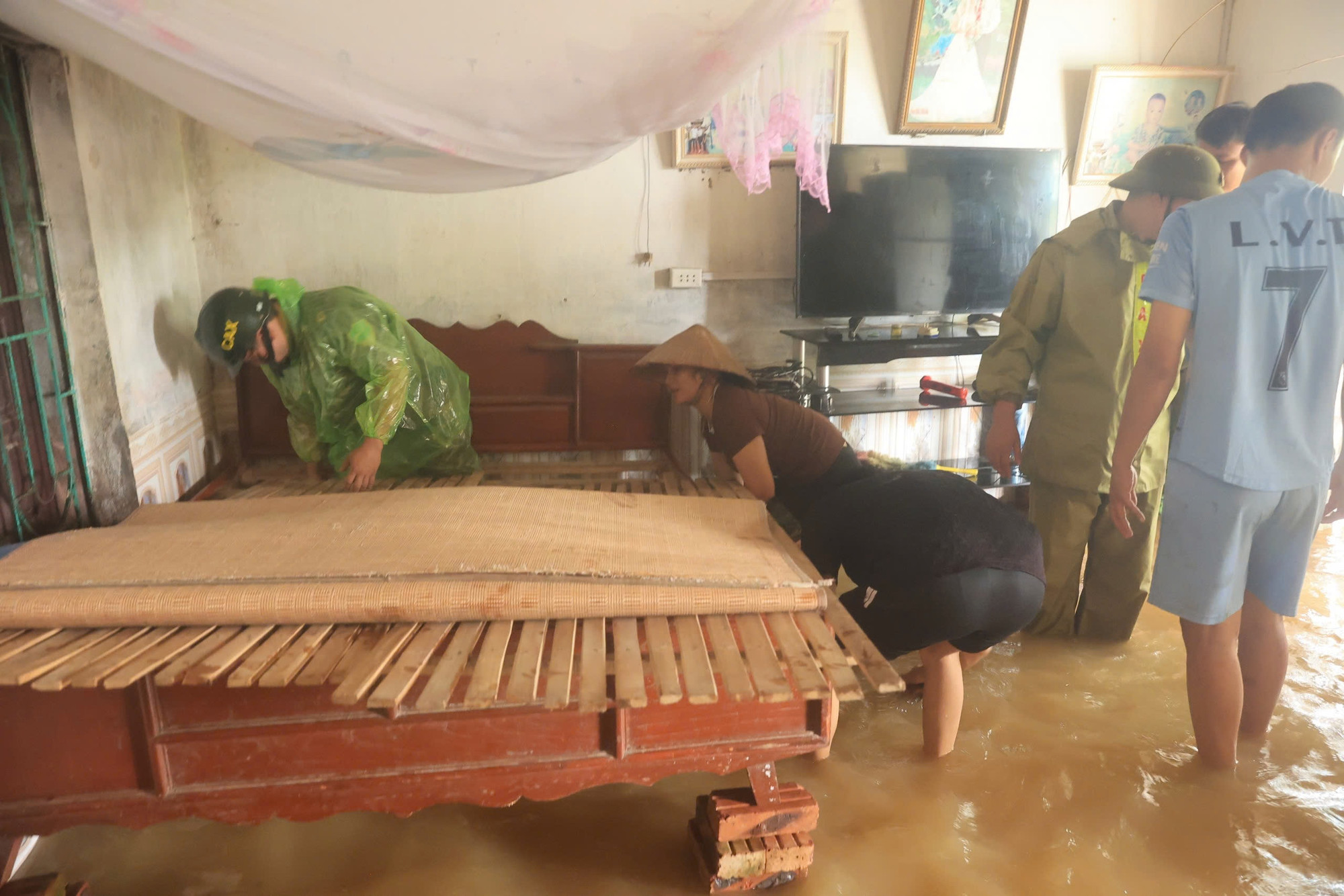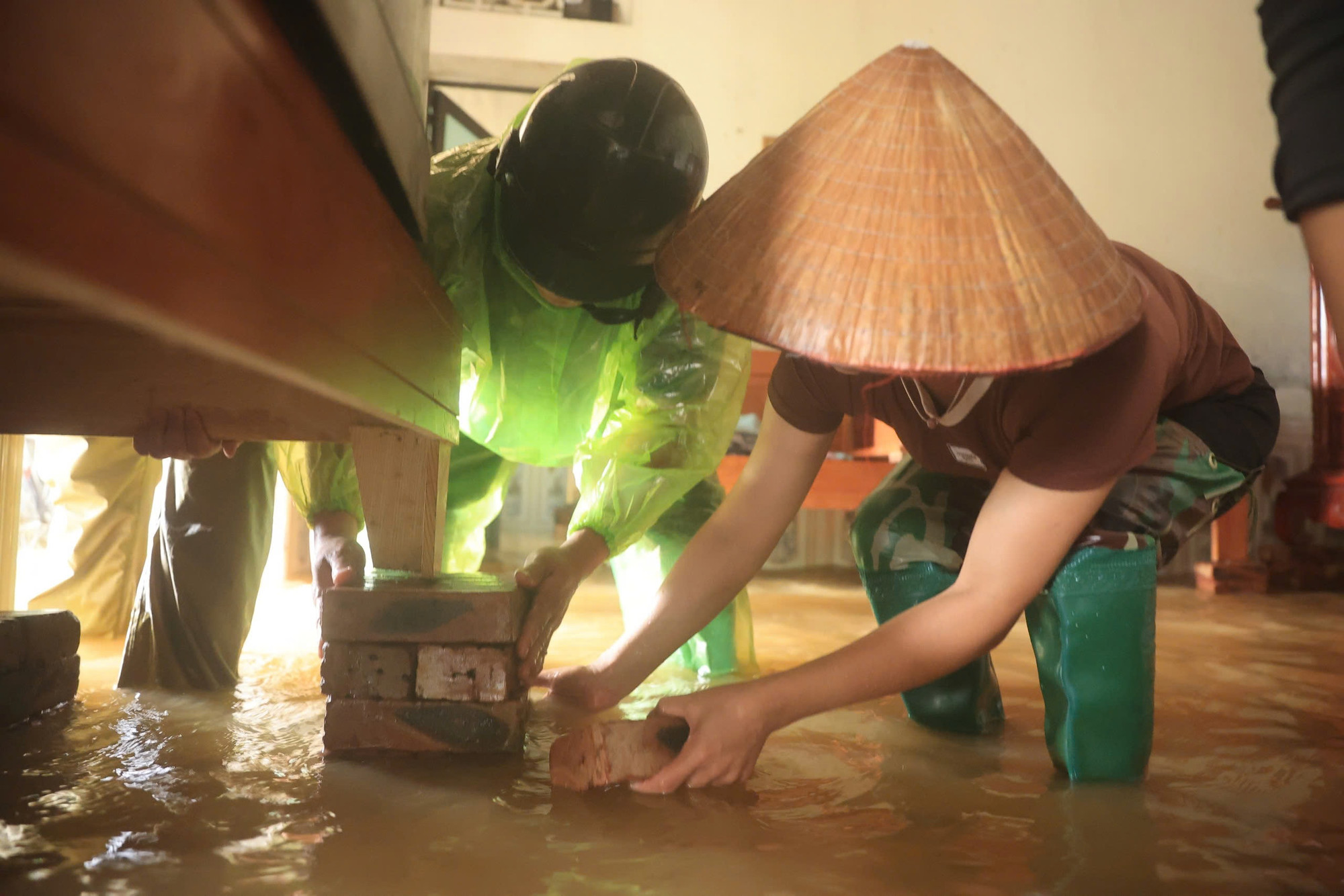 | Một người dân tranh thủ di chuyển đồ đạc có giá trị ra khỏi căn nhà. Vào thời điểm sáng 11/9, nước đã mấp mé ngôi nhà của gia đình ông. |