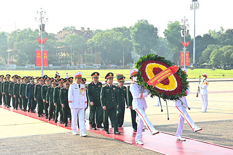 | Đoàn đại biểu Quân ủy Trung ương và Bộ Quốc phòng vào Lăng viếng Bác. |