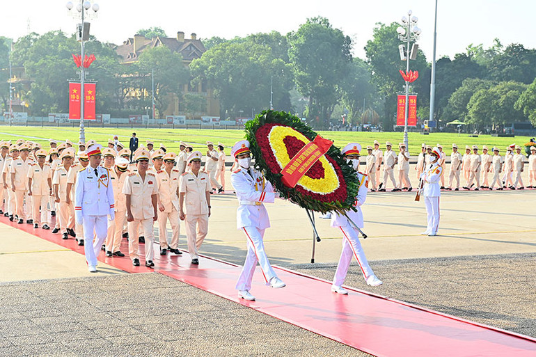 | Đoàn đại biểu Đảng ủy Công an Trung ương và Bộ Công an vào Lăng viếng Chủ tịch Hồ Chí Minh. |