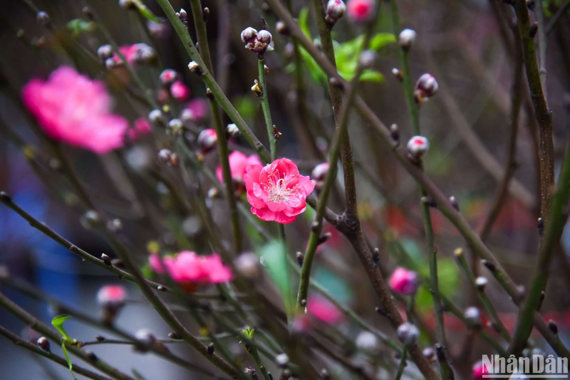 | Những cành đào nhỏ được nhiều người chọn mua để về cúng ông Táo (23 tháng Chạp) hoặc để trưng bày chơi trước Tết. |