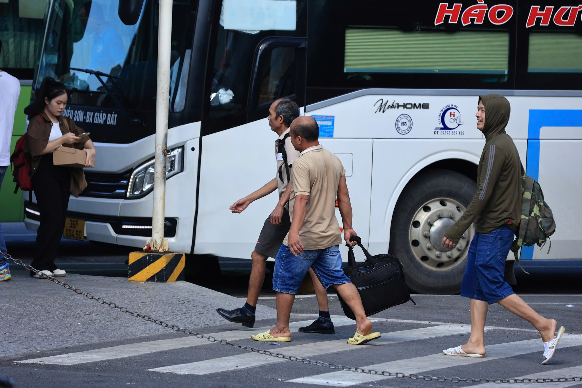 | Hành khách chuẩn bị lên xe tuyến Hà Nội - Thanh Hóa tại bến Giáp Bát chiều 30/8. |