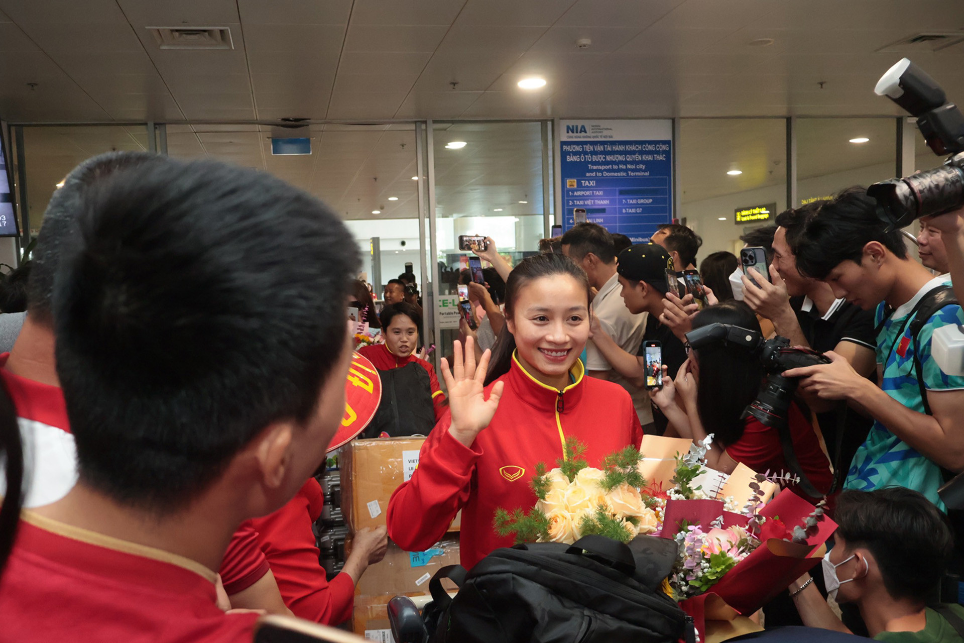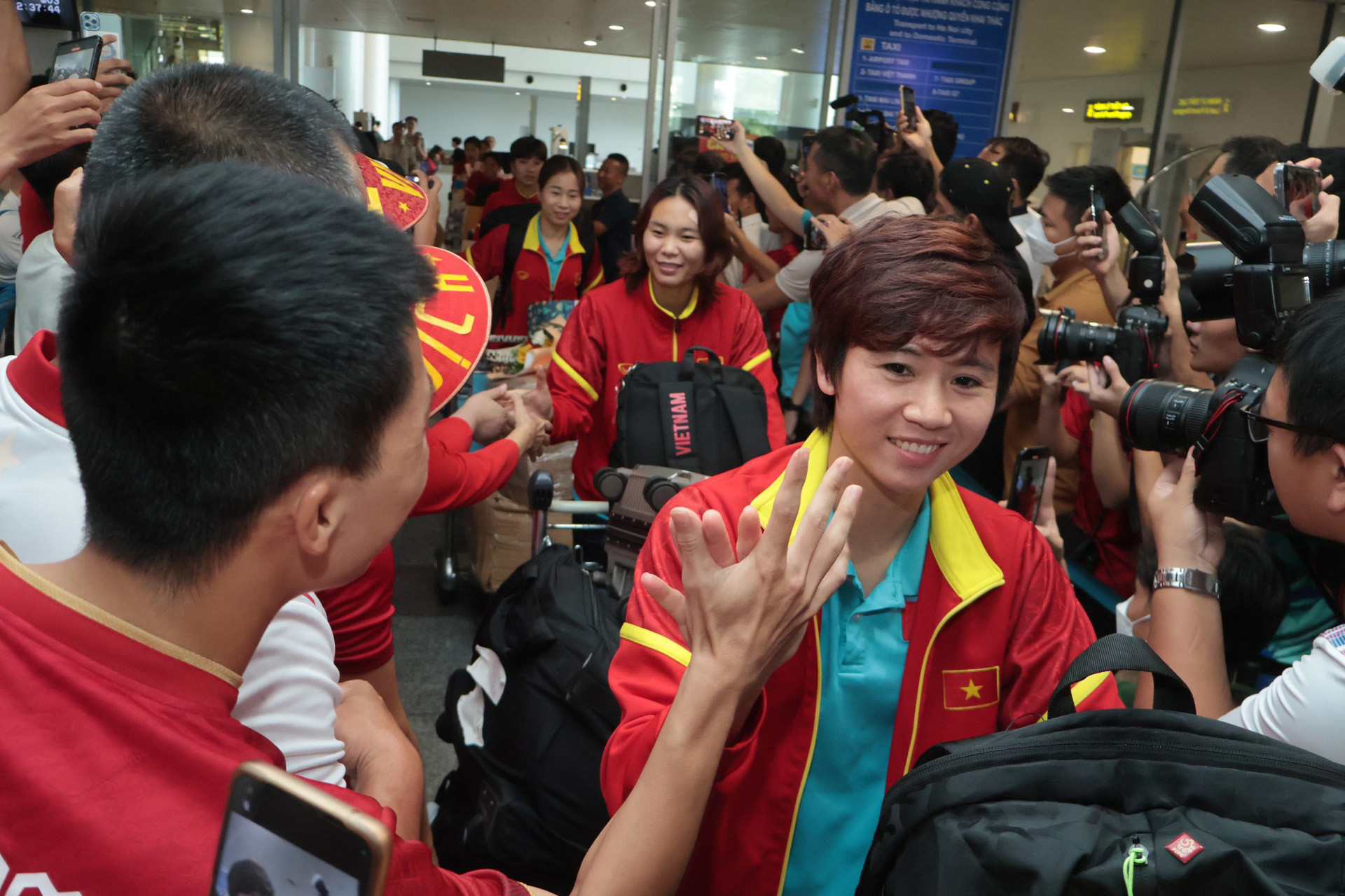 Đón đội ở sân bay quốc tế Nội Bài có bà Lê Thị Hoàng Yến - Phó Tổng cục trưởng Tổng cục Thể dục Thể thao; đại diện Liên đoàn Bóng đá Việt Nam cùng đông đảo các cơ quan báo chí, truyền thông và người hâm mộ.