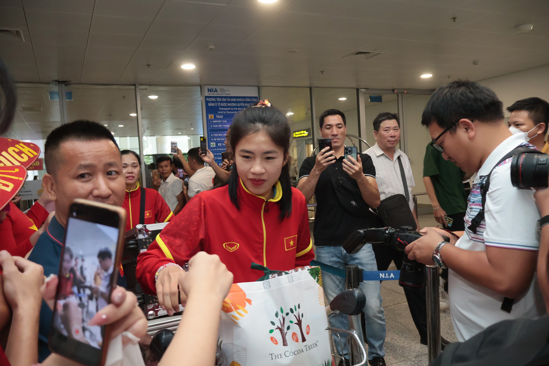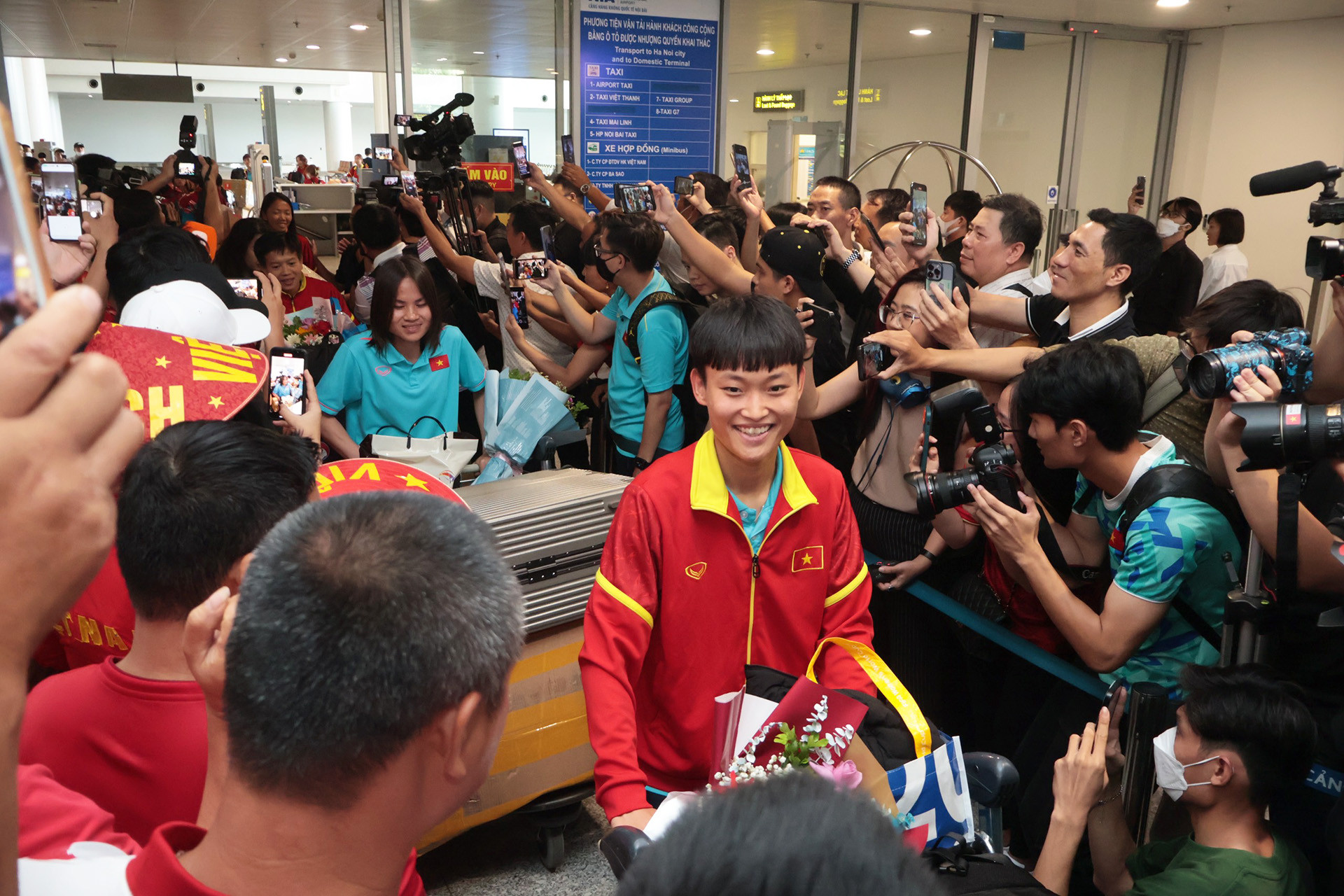 Tại sân bay, huấn luyện viên Mai Đức Chung chia sẻ: “Hôm qua, chúng tôi cũng được người Việt Nam ở New Zealand tiễn về nước trước khi đội rời khách sạn ra sân bay và hôm nay về tới Việt Nam chúng tôi rất bất ngờ và xúc động… Xin cảm ơn cổ động viên và người dân Việt Nam đã tiếp đón chúng tôi nồng hậu. Đội tuyển nữ Việt Nam rất cảm động trước tình cảm này”.