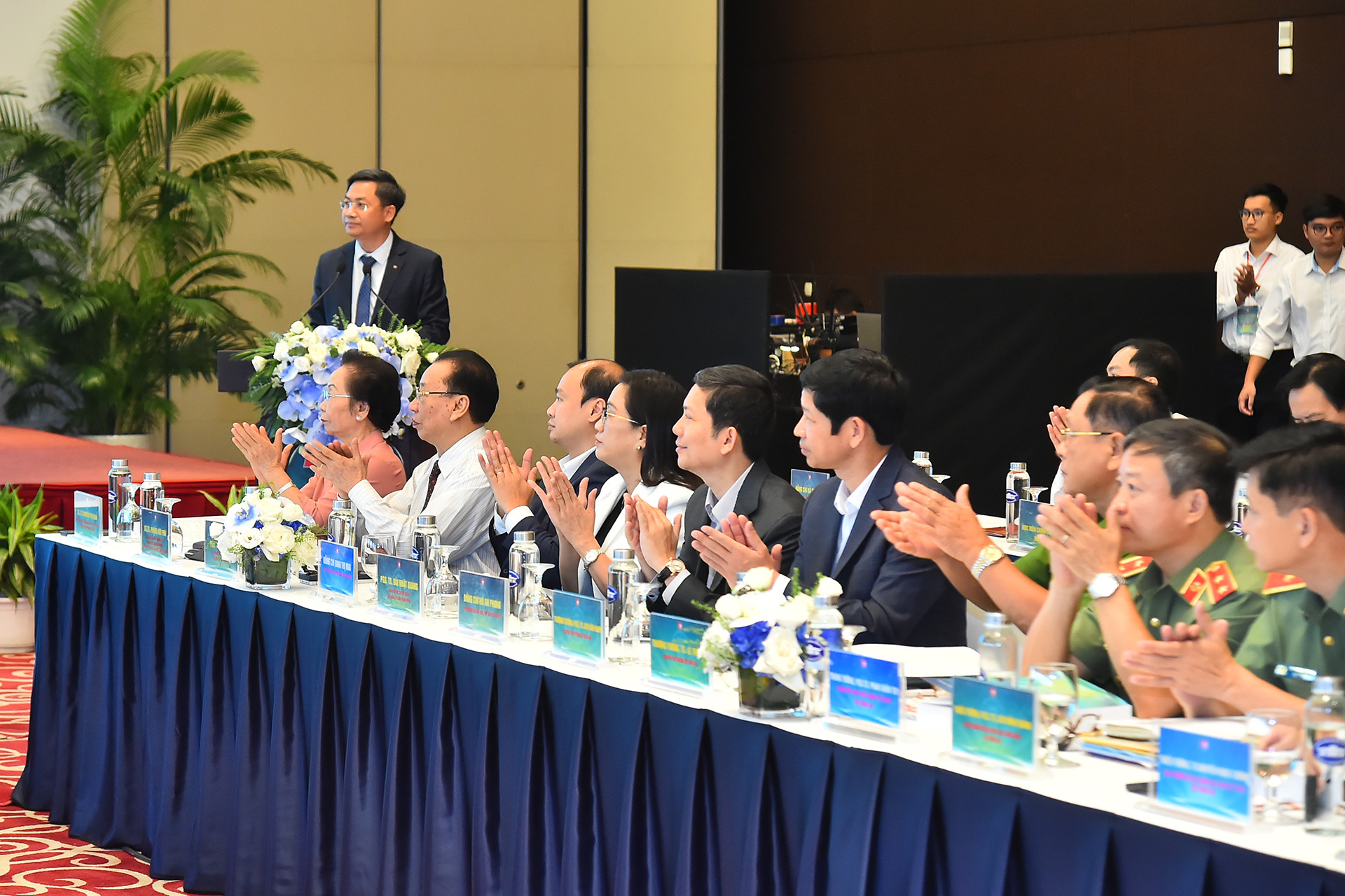 | Các đồng chí lãnh đạo Đảng, Nhà nước, Bộ Quốc phòng, Bộ Công an và thành phố Hà Nội tại Hội thảo khoa học quốc gia “Tầm nhìn mới, cơ hội mới xây dựng Thủ đô Hà Nội văn hiến-văn minh-hiện đại, thành phố kết nối toàn cầu”. |