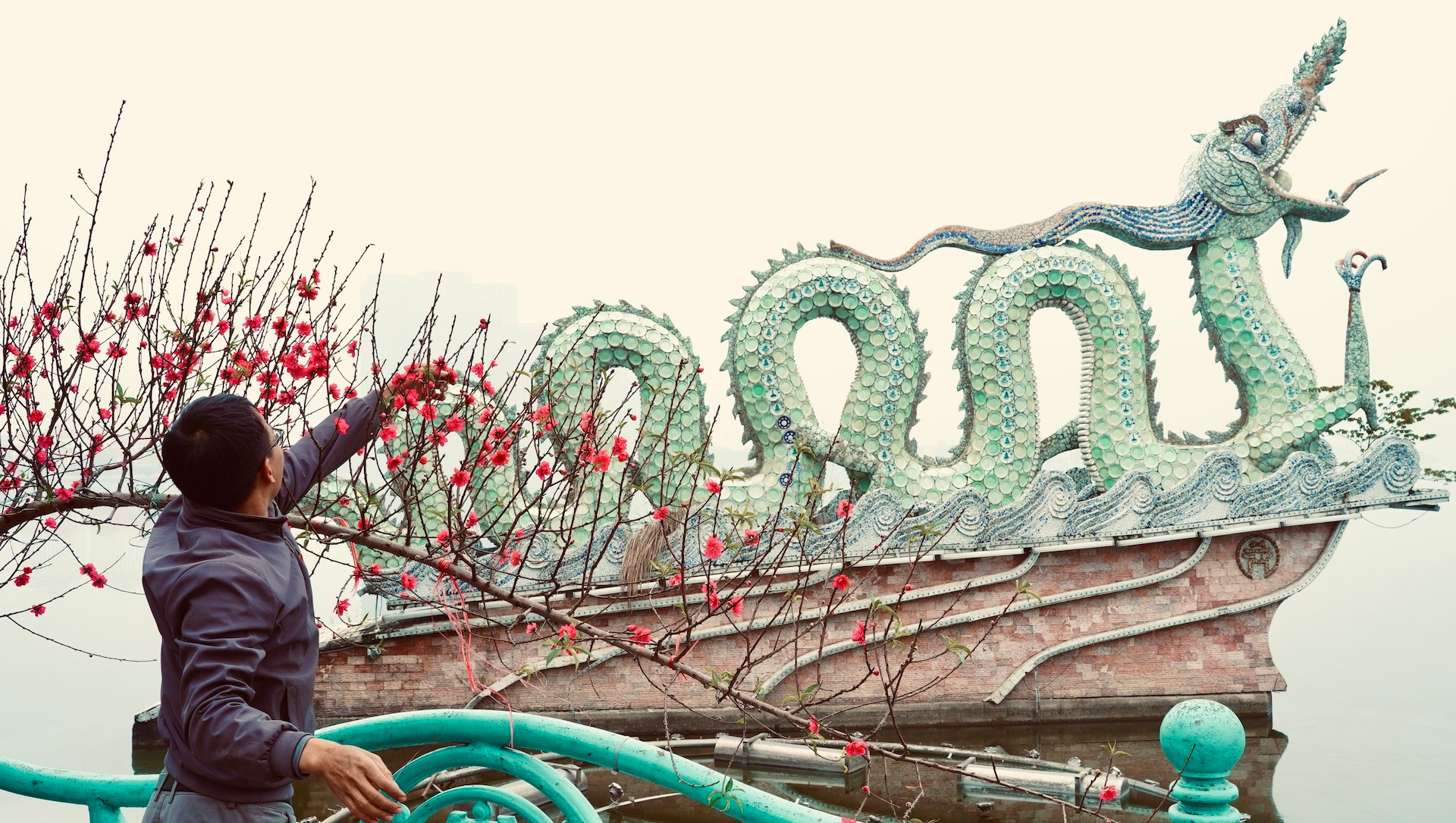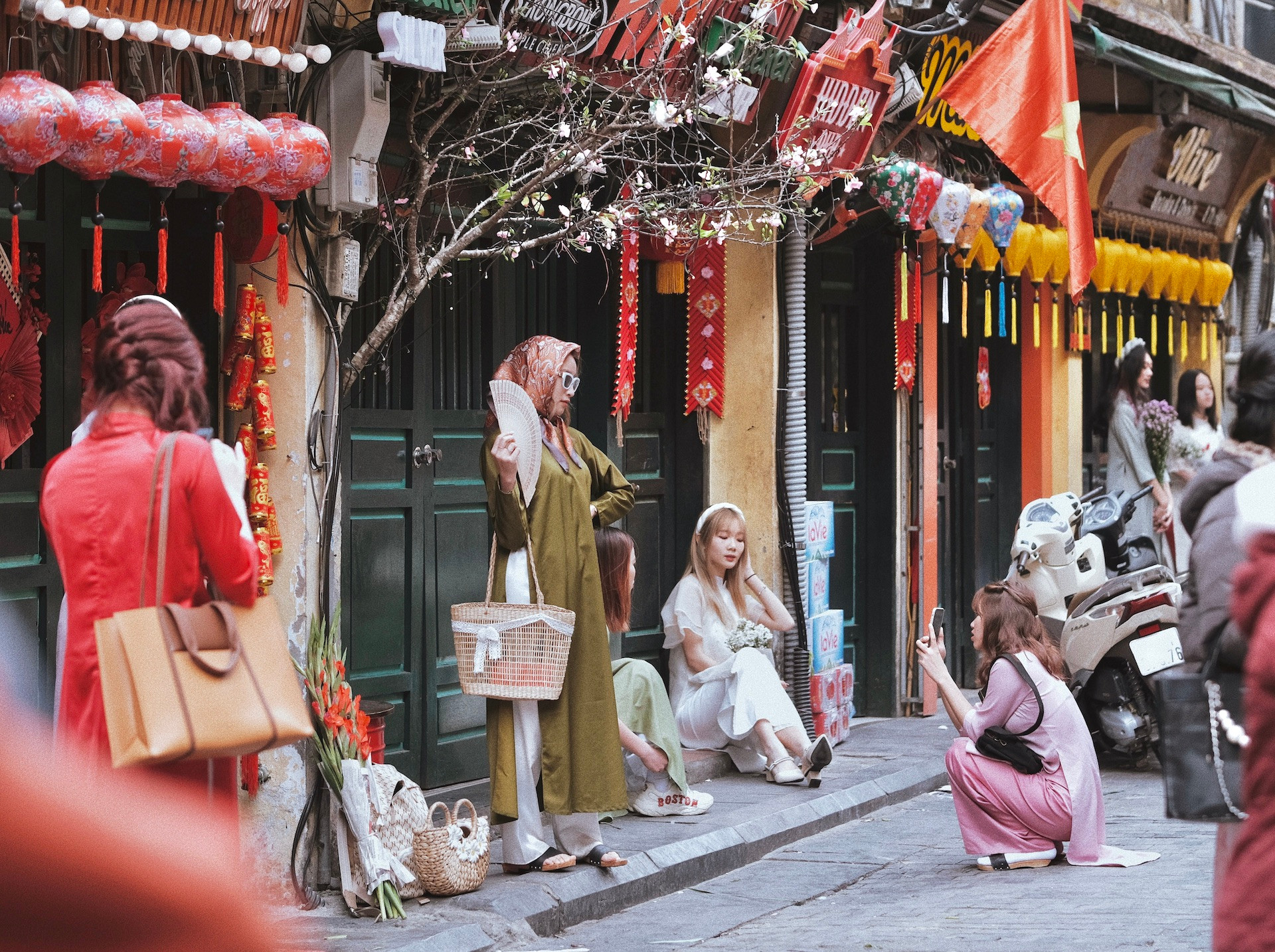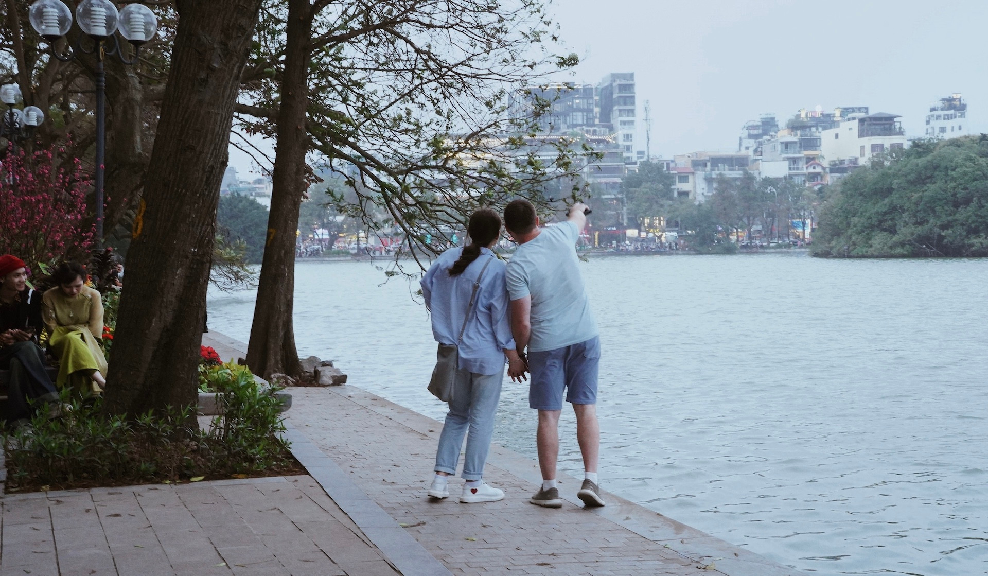 Những vị khách nước ngoài cũng tận hưởng thời tiết dễ chịu và không khí nhộn nhịp của thời điểm năm con rồng sắp sang.