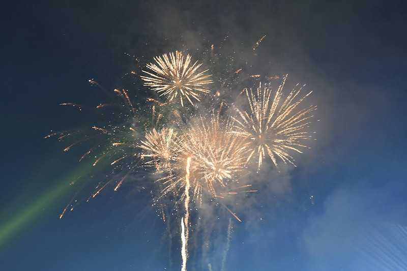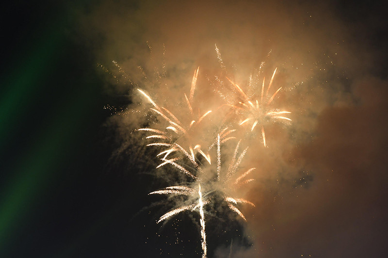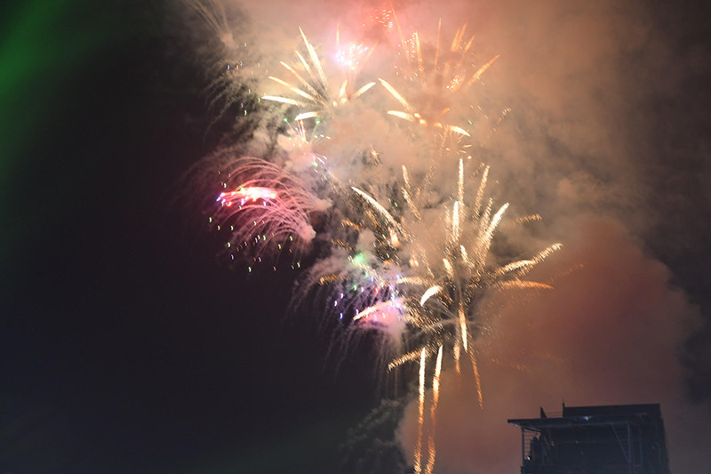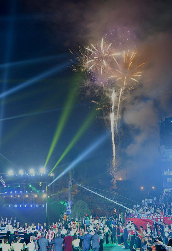 | Người dân thành phố Điện Biên Phủ và du khách theo dõi màn bắn pháo hoa. |