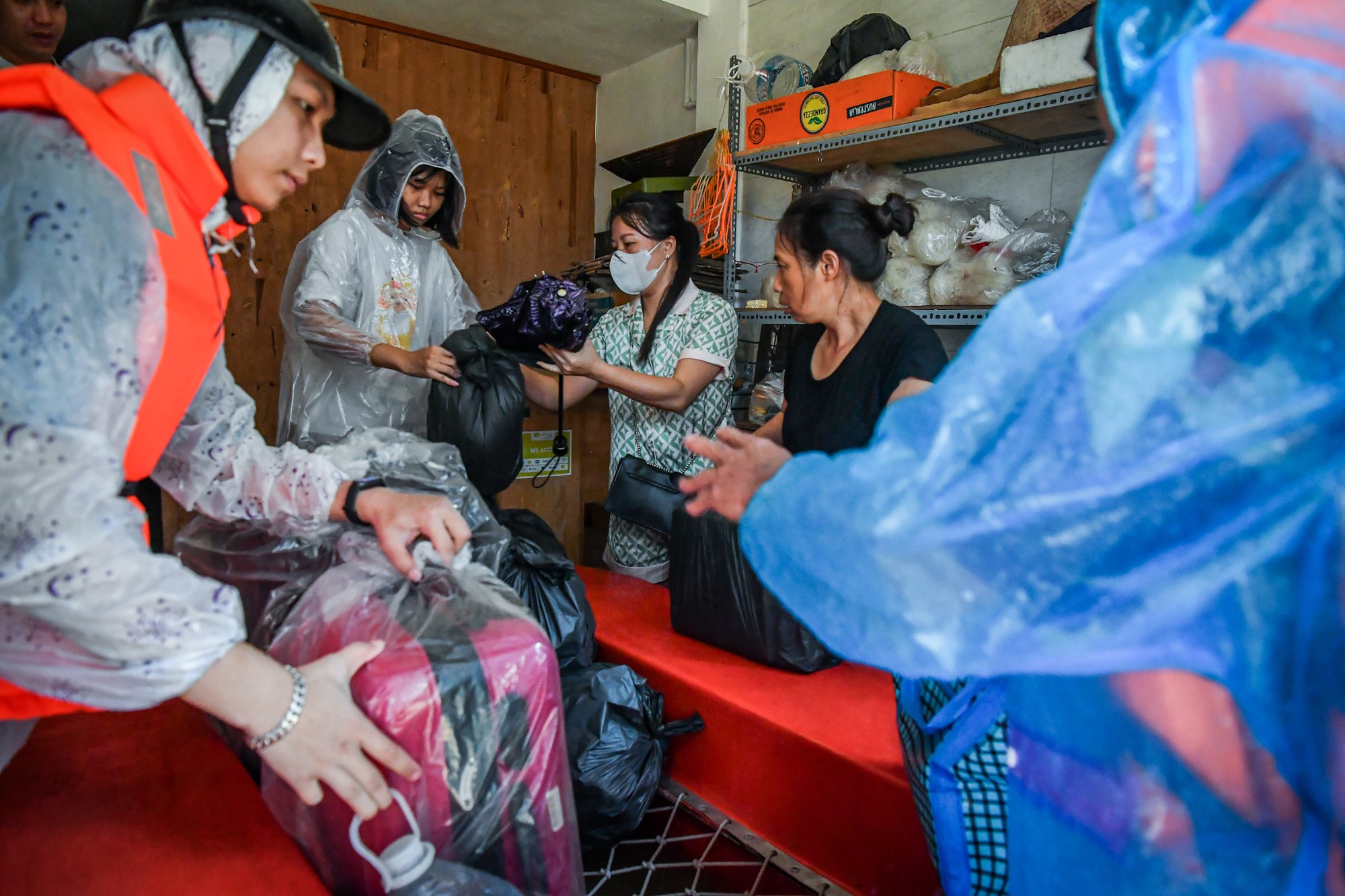 | Người dân mang theo những vật dụng rời khỏi nhà chiều 11/9. |