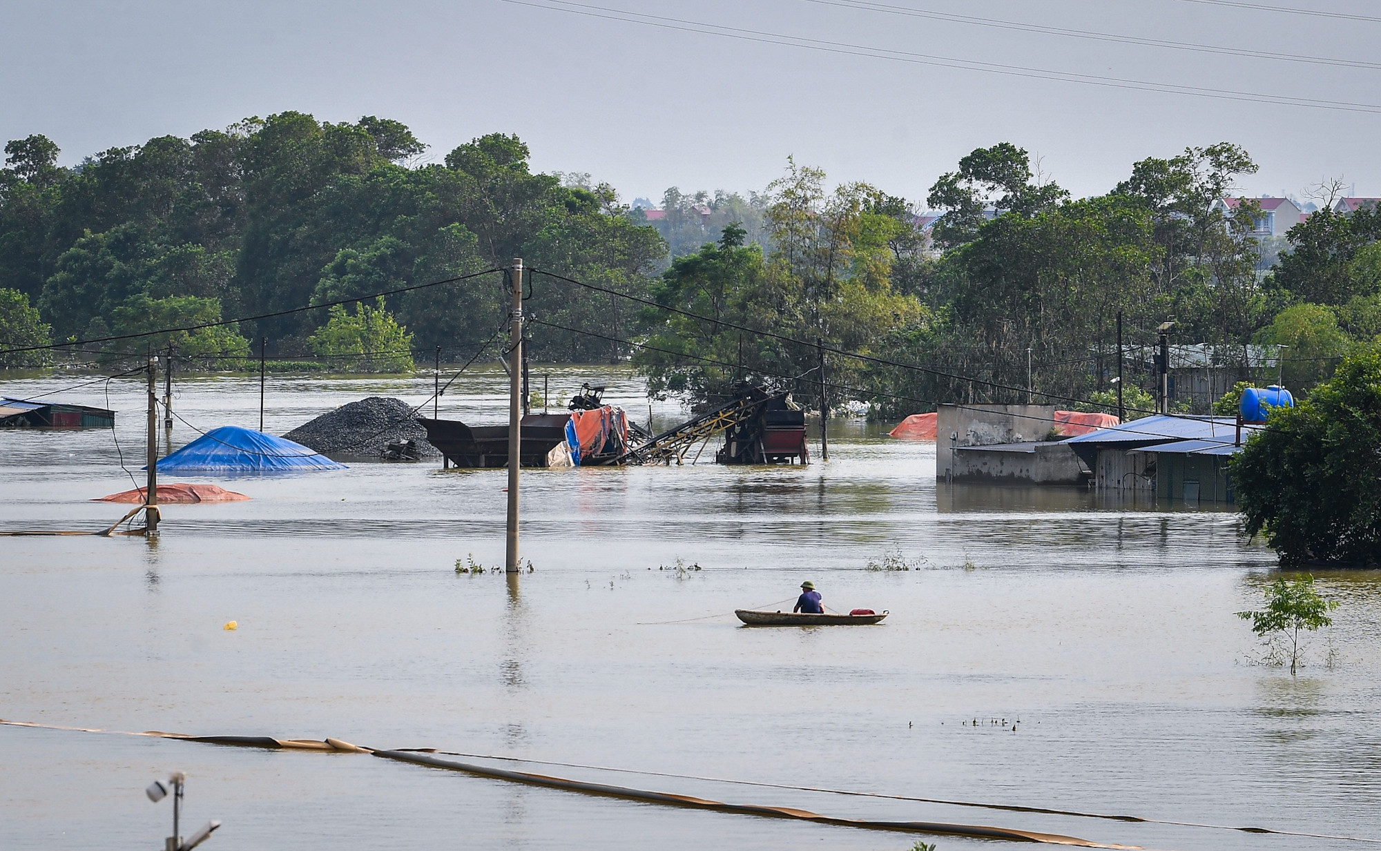 | Nước mênh mông xóa bỏ ranh giới của những con đường liên thôn. |