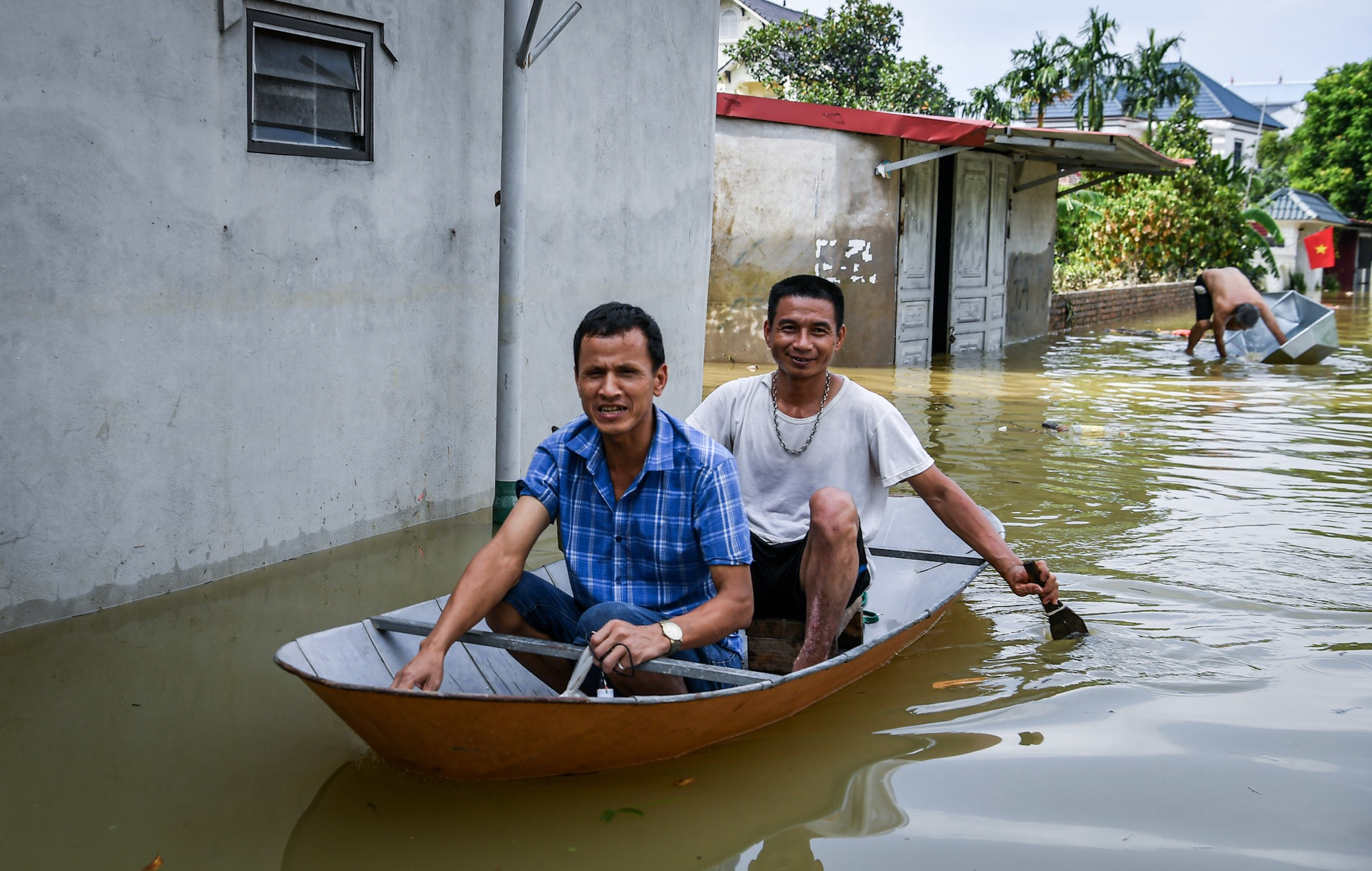 | ... hoặc lội nước khi mực nước lũ vẫn ngập ít nhất ngang bụng. |