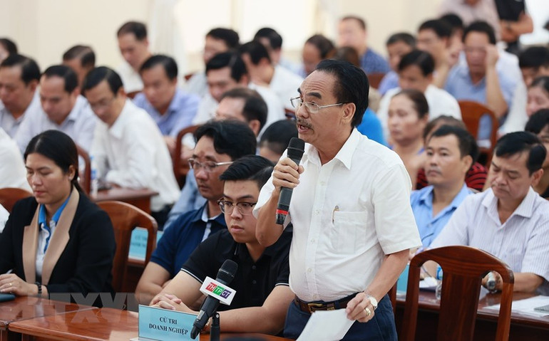 Cử tri Huỳnh Trung Quang, đại diện doanh nghiệp trên địa bàn thành phố Cần Thơ phát biểu ý kiến. (Ảnh: TTXVN)