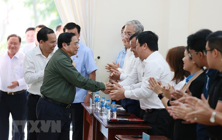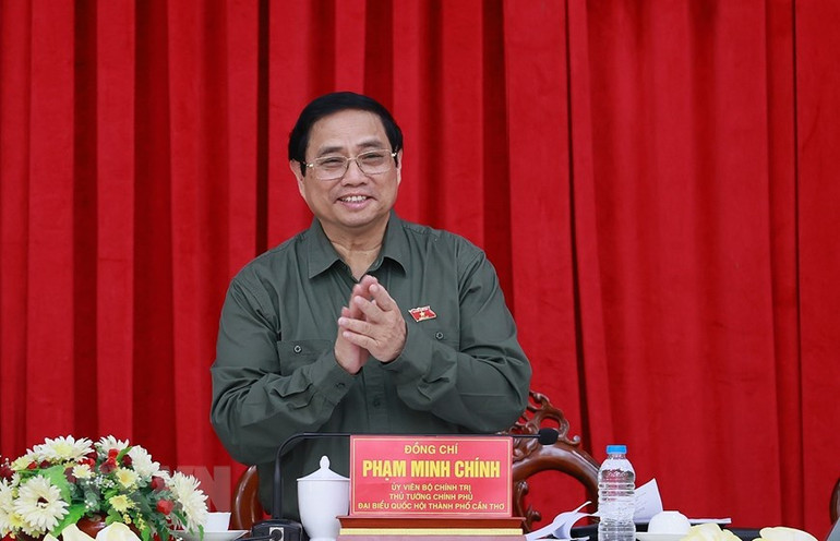 Thủ tướng Phạm Minh Chính tiếp xúc cử tri thành phố Cần Thơ. (Ảnh: TTXVN)