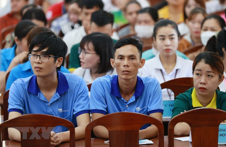 Cử tri công nhân lao động thành phố Cần Thơ. (Ảnh: TTXVN)