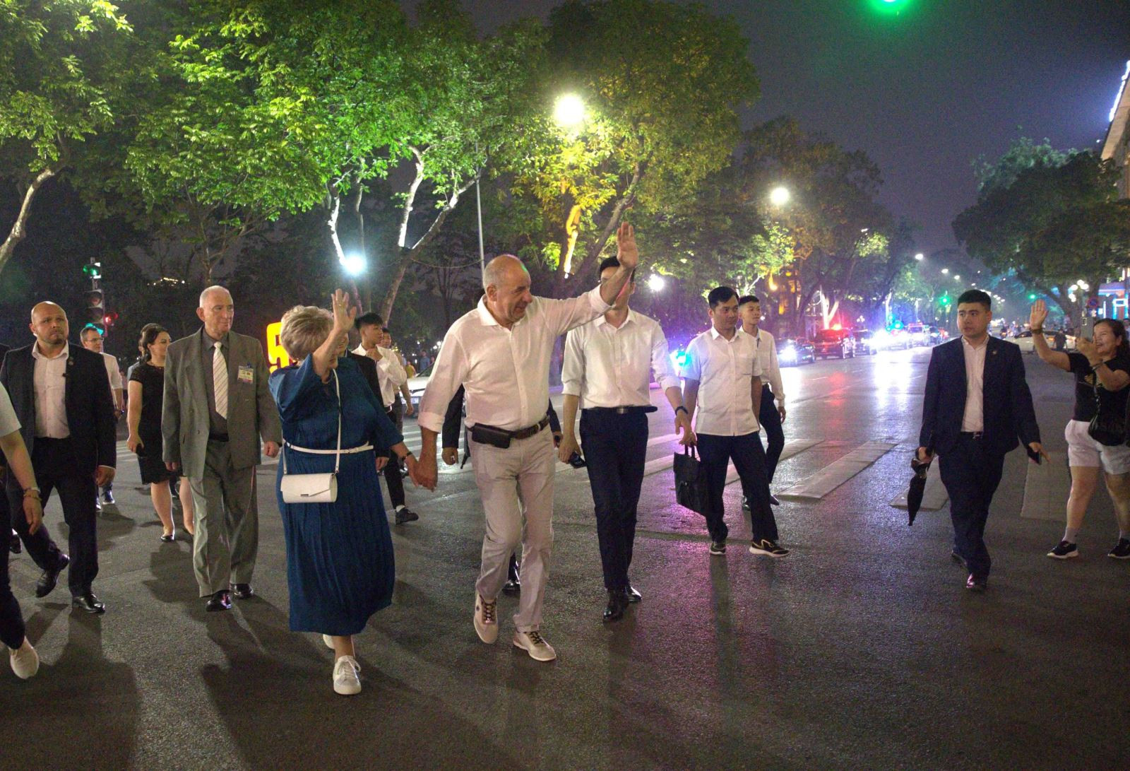 | Tổng thống Hungary Sulyok Tamás và Phu nhân đi dạo một số khu phố Hà Nội. (Ảnh: AN ĐĂNG/TTXVN) |