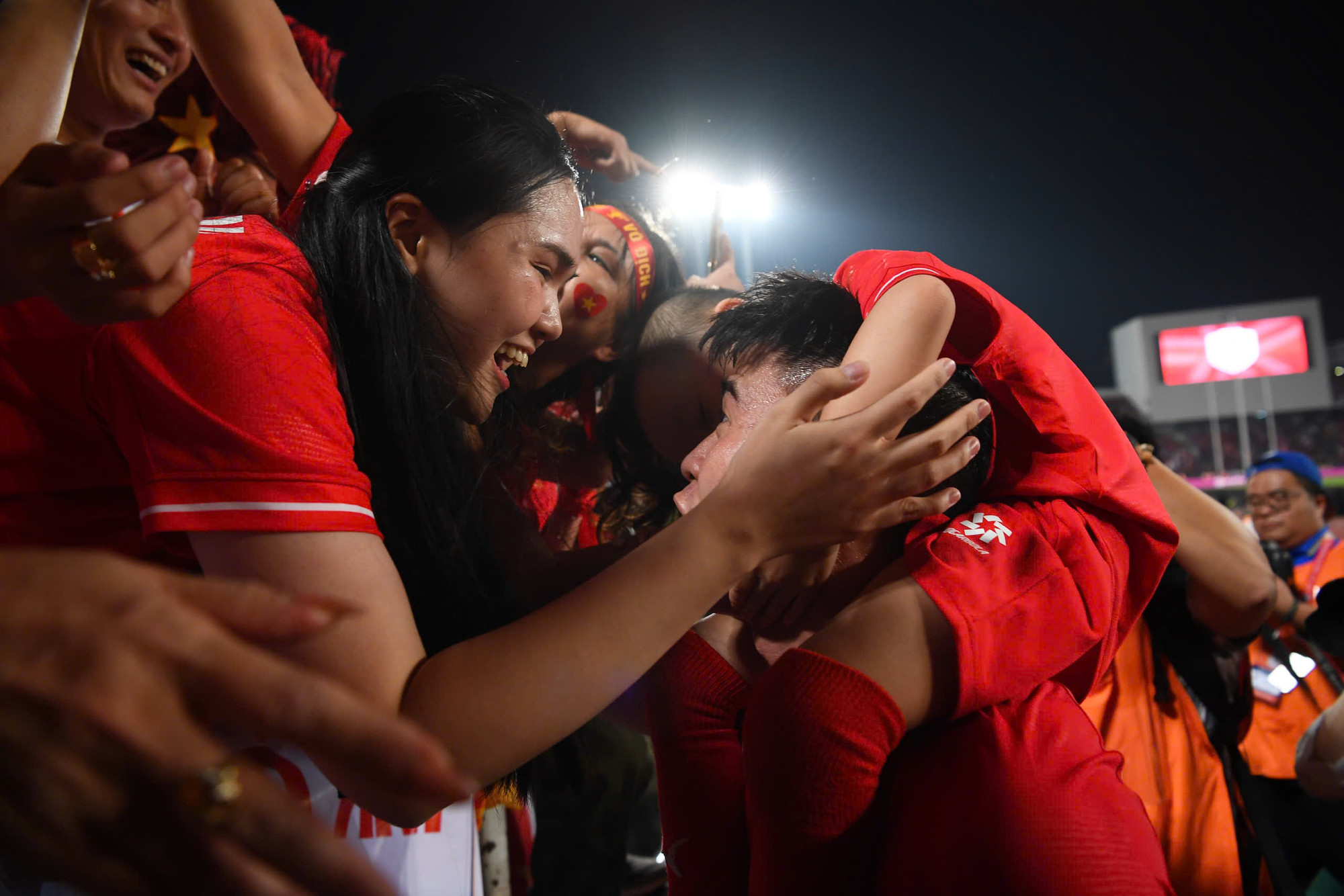 | Khi tiếng còi kết thúc trận Chung kết lượt về ASEAN Cup 2024 vang lên, các chiến binh áo vàng đã vỡ òa niềm vui. |