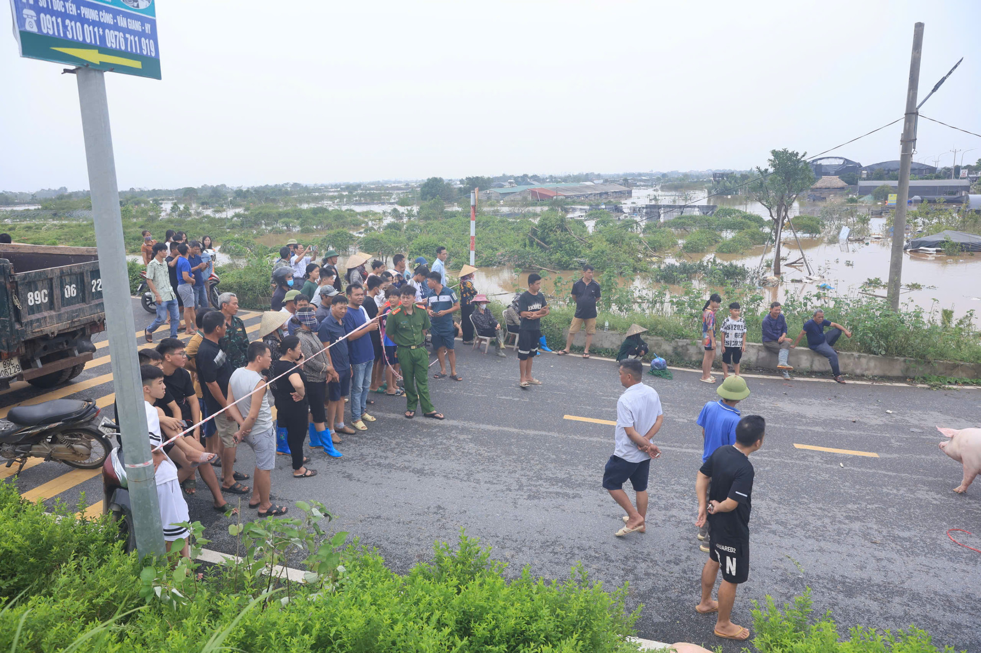 | Do ảnh hưởng của cơn bão số 3, mực nước sông Hồng tại 3 xã Xuân Quan, Phụng Công, Văn Đức (Văn Giang, Hưng Yên) dâng nhanh, gây ra hiện tượng ngập lụt trên diện rộng. |