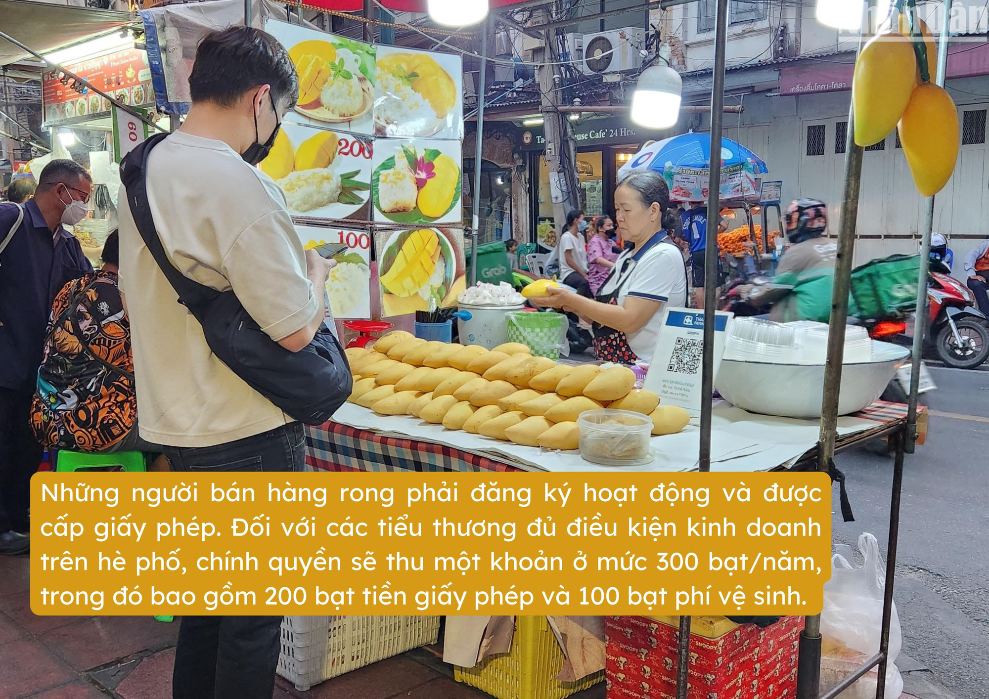 Từ năm 2005, Chính quyền thành phố Bangkok (BMA) đã ban hành một quy định cụ thể về việc quản lý các loại hàng rong trên vỉa hè. Theo đó, những người bán hàng rong phải đăng ký hoạt động và được cấp giấy phép. Đối với các tiểu thương đủ điều kiện kinh doanh trên hè phố, chính quyền sẽ thu một khoản ở mức 300 bạt/năm, trong đó bao gồm 200 bạt tiền giấy phép và 100 bạt phí vệ sinh.