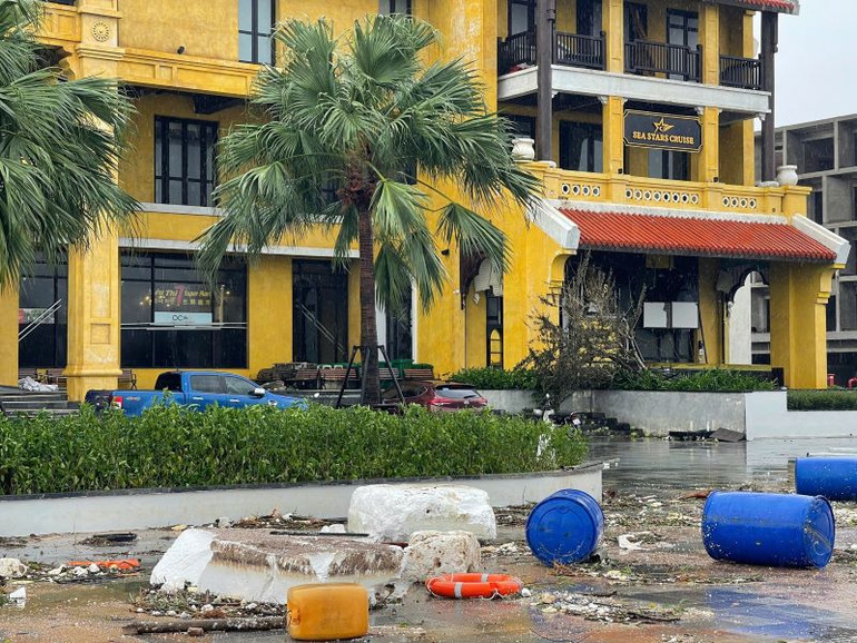 Theo thống kê sơ bộ, Cảng tàu khách quốc tế Hạ Long đã hứng chịu nhiều thiệt hại do bão Yagi gây ra. Nhiều cây cối và pano bị đổ, rơi hiện chưa thống kê được số lượng.