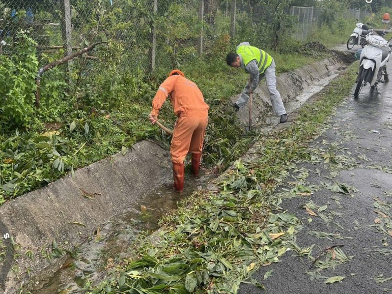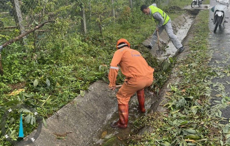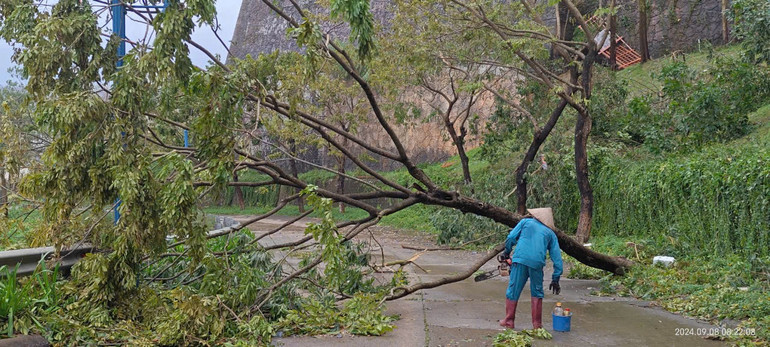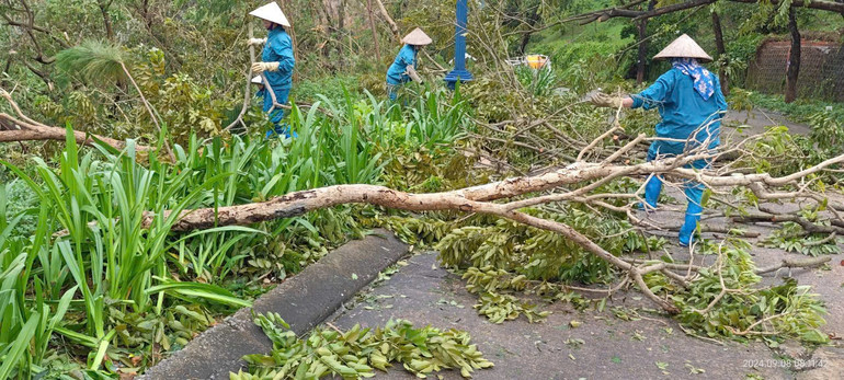 | Cán bộ, công nhân viên Công viên Sun World Hạ Long tập trung khắc phục sự cố sau bão. |