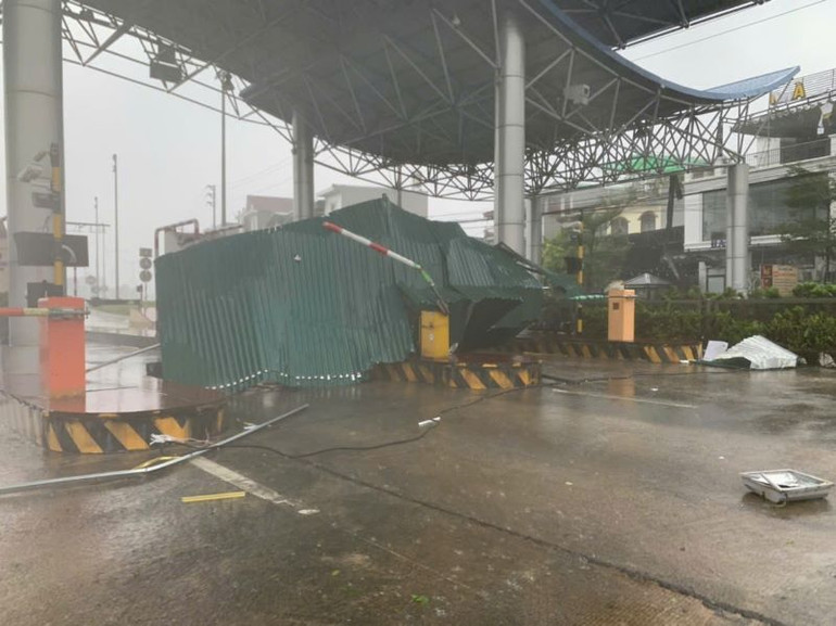 Ban Quản lý các tuyến đường cao tốc nói trên cho hay, gió lớn đã làm thiệt hại một số cơ sở vật chất như mái che nhà gửi xe của nhà điều hành bị cuốn; gió lớn thậm chí còn thổi nghiêng đổ cả chiếc container phục vụ cấp đổi thẻ,... Nhân viên trực vận hành thu phí tại trạm đã sơ tán về nơi an toàn.