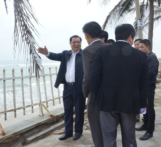 Chủ tịch UBND TP Đà Nẵng cùng đoàn công tác đi kiểm tra tình trạng biển xâm thực, trưa 19-1.