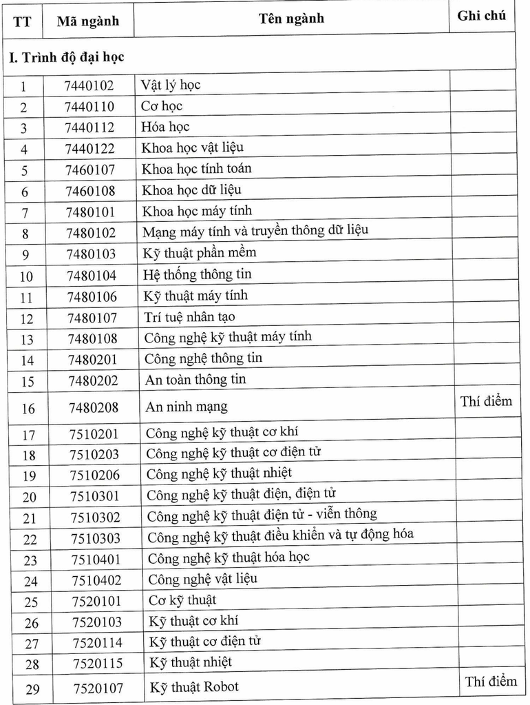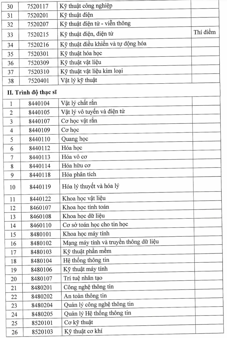 Bộ Giáo dục và Đào tạo cũng công bố danh mục các ngành đào tạo phục vụ nhân lực ngành công nghiệp bán dẫn, thống kê các ngành liên quan đến vi mạch bán dẫn có thể tham gia đào tạo nhân lực cho ngành công nghiệp bán dẫn theo quy định hiện hành. Ngoài các ngành đào tạo được nêu tại danh mục này, những ngành đào tạo được Bộ Giáo dục và Đào tạo cho phép thực hiện thí điểm hoặc bổ sung vào danh mục đào tạo trình độ đại học, thạc sĩ về vi mạch bán dẫn phải thực hiện theo quy định.