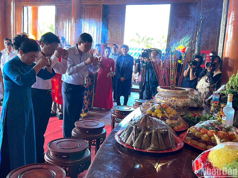 | Đông đảo người dân tề tựu về Đền thờ Vua Hùng tại Cà Mau để thành kính tưởng nhớ, tri ân công ơn trời biển của các vị Vua Hùng. |