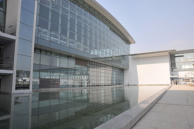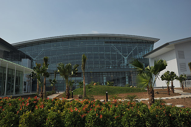 Hai bên đường vào chính của Nhà ga là hai hồ nước lớn, với ý tưởng thiết kế thân thiện với cảnh quan môi trường.