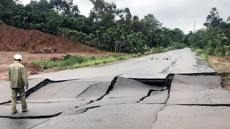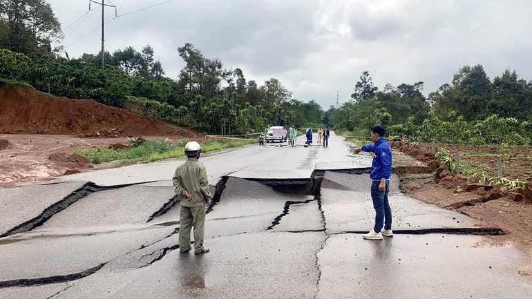Chiều 5/8, Ủy ban nhân dân thành phố Bảo Lộc thông tin, do mưa lớn kéo dài từ ngày 3 đến sáng 4/8, khiến tuyến đường tránh phía nam thành phố, đoạn qua phường Lộc Sơn, bị sụt lún kéo dài.