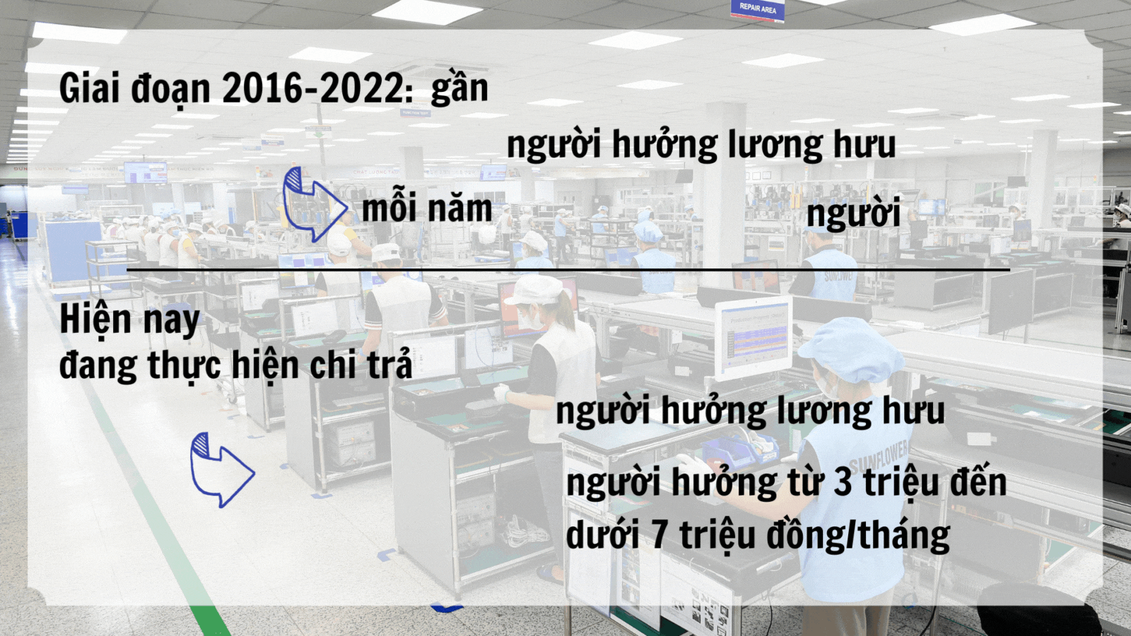 Theo thông tin từ Bảo hiểm xã hội Việt Nam, trong giai đoạn 2016-2022, cả nước đã giải quyết gần 763 nghìn người hưởng lương hưu, đạt mức trung bình giải quyết lương hưu mỗi năm cho khoảng 109 nghìn người. Trong đó, có khoảng 420 nghìn người đạt tỷ lệ hưởng lương hưu 75%, chiếm tỷ lệ 55,2% số người được giải quyết hưởng chế độ hưu trí.