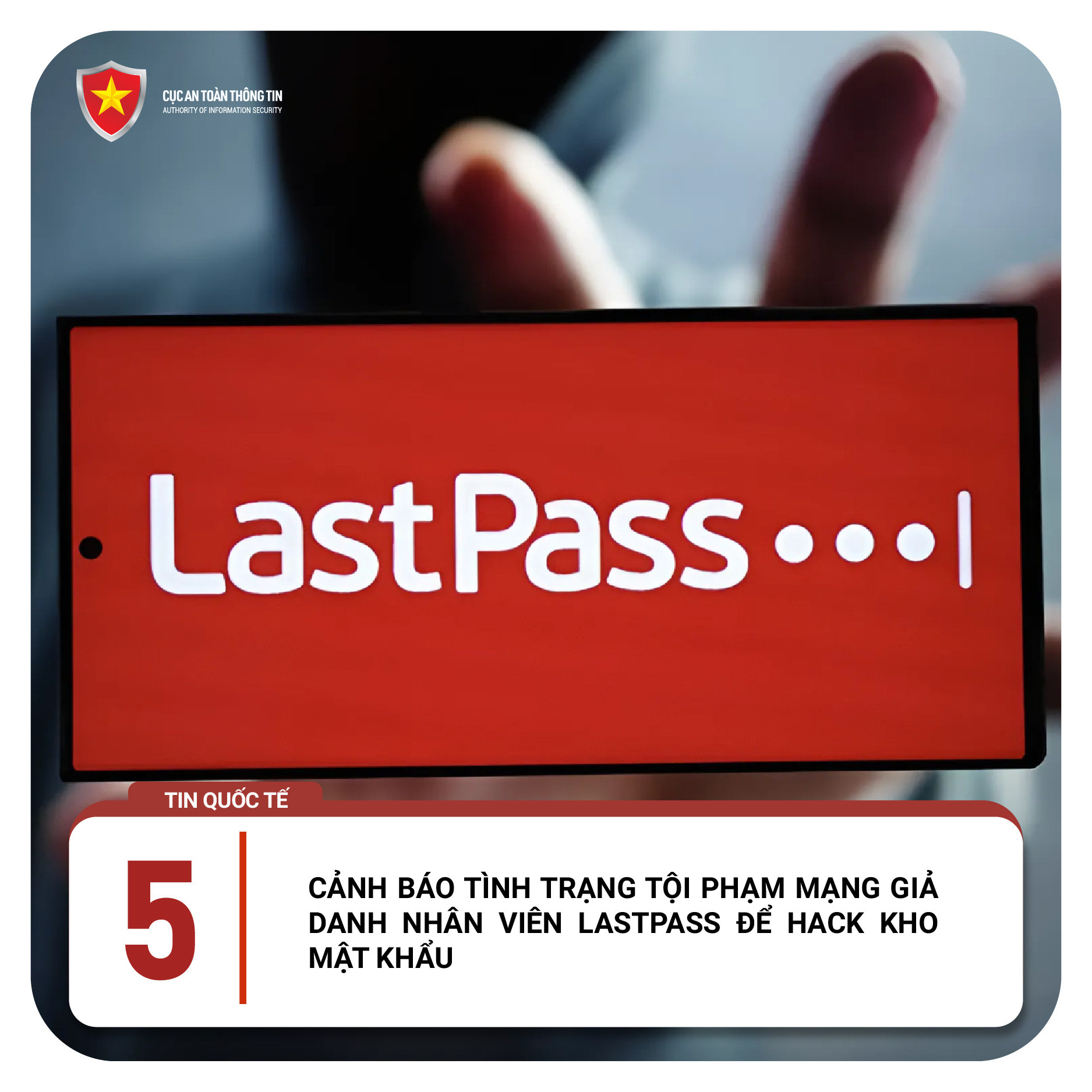 Trước thông tin trên, Cục An toàn thông tin (Bộ Thông tin và Truyền thông) khuyến cáo người dùng dịch vụ quản lý mật khẩu phổ biến cần cẩn thận với các cuộc gọi điện thoại, tin nhắn hoặc email đáng ngờ tự xưng là đến từ LastPass.