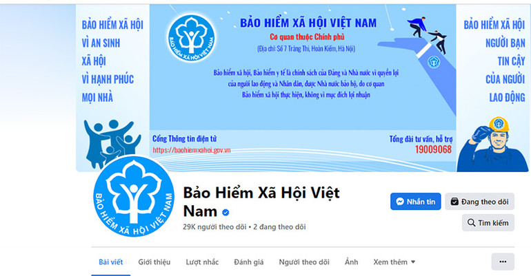 Fanpage Facebook tại địa chỉ: https://www.facebook.com/baohiemxahoi.gov.vn;