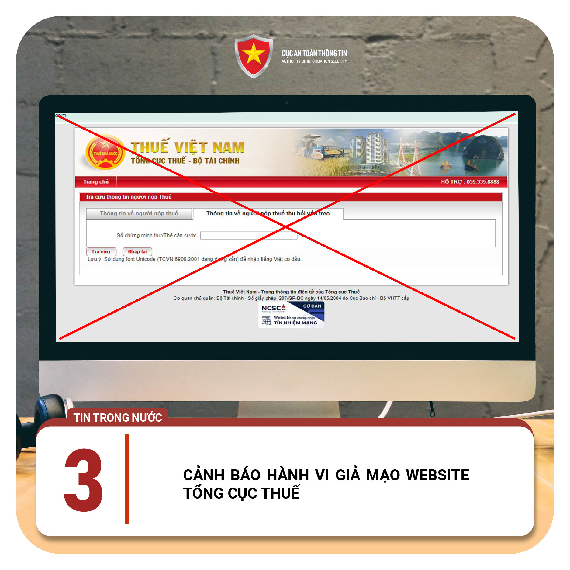 CẢNH BÁO HÀNH VI GIẢ MẠO WEBSITE TỔNG CỤC THUẾ