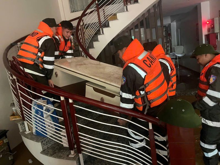 Trong đó, Bộ Tư lệnh Cảnh sát cơ động huy động các Trung đoàn đóng quân trên các địa bàn trọng điểm xảy ra bão, lũ sẵn sàng cứu nạn, cứu hộ và hướng dẫn, phối hợp với Công an các địa phương triển khai hiệu quả các giải pháp khắc phục.
