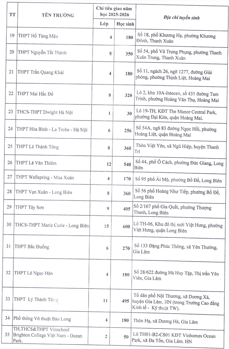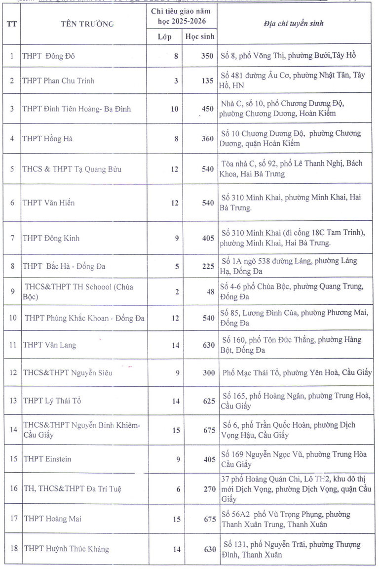 Sở Giáo dục và Đào tạo Hà Nội vừa công bố chỉ tiêu tuyển sinh vào lớp 10 năm học 2025-2026 của các trường THPT tư thục trên địa bàn thành phố.