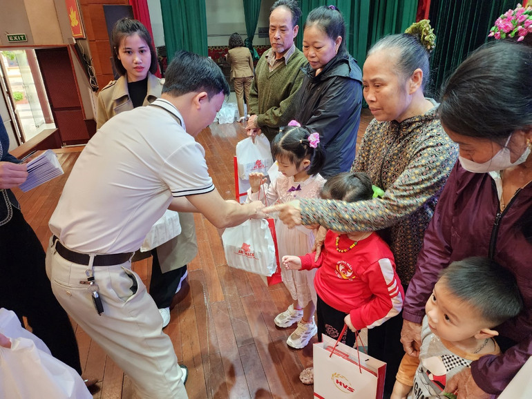 | Đại diện Công ty cổ phần Đầu tư Trung Quý Bắc Ninh trao quà cho các cháu nhỏ mồ côi. |