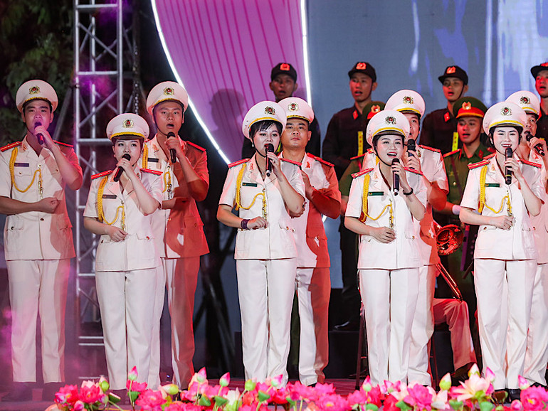 Đồng thời, các tiết mục nhằm tuyên truyền quảng bá việc học tập và làm theo tư tưởng, đạo đức, phong cách Hồ Chí Minh; phong trào “Công an nhân dân học tập, thực hiện Sáu điều Bác Hồ dạy”, phong trào thi đua “Vì an ninh Tổ quốc”; ca ngợi người chiến sĩ Công an nhân dân bản lĩnh, nhân văn, vì nhân dân phục vụ.