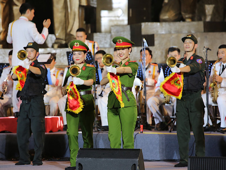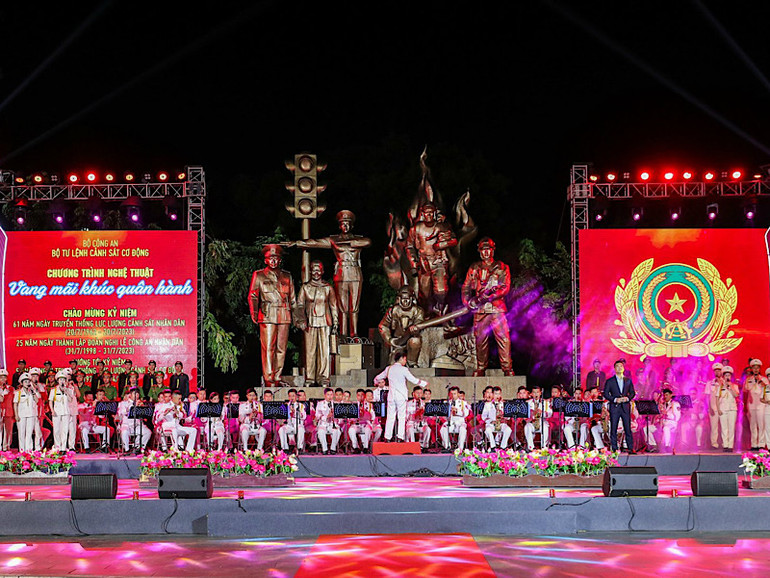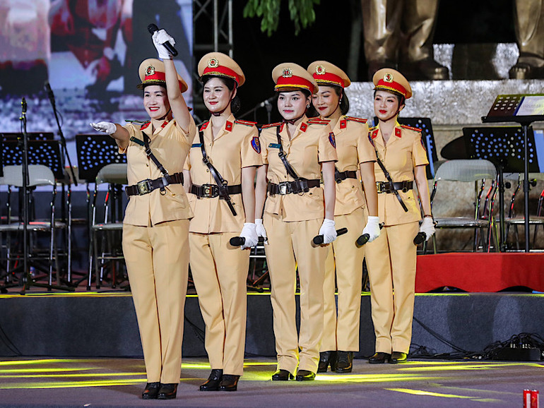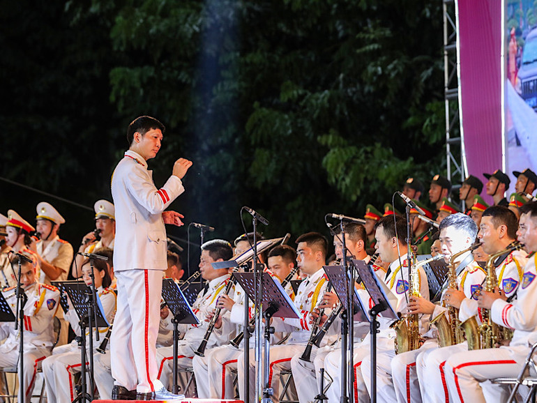 Chương trình biểu diễn hòa nhạc nghệ thuật với sự tham gia của hơn 100 cán bộ, chiến sĩ thuộc Đoàn Nghi lễ Công an nhân dân, gồm 3 phần: Vang mãi khúc quân hành; Tổ quốc trong tim người chiến sĩ Công an; mãi niềm tin theo đảng, với 16 bài hát và múa phối hợp cùng Trường Đại học văn hóa nghệ thuật Quân đội biểu diễn.