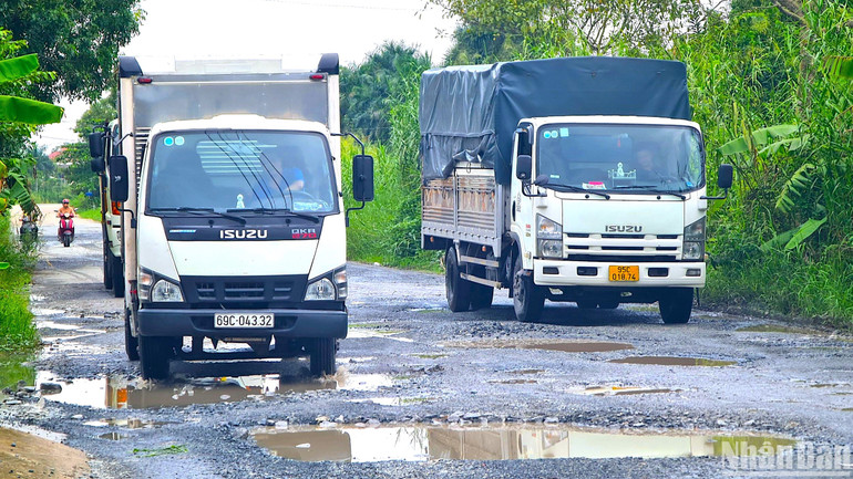 | Nhiều đoạn trên tuyến Mậu Thân hư hỏng nặng, xe ô-tô, gắn máy dù “nhích từng bước” cũng không thể tránh hết được ổ gà, ổ voi. |
