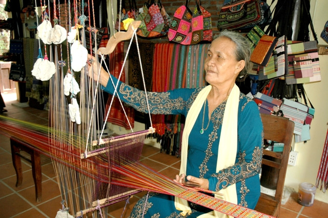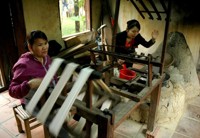 Dệt lụa tơ tằm làng dệt Mã Châu, Duy Xuyên (Quảng Nam).