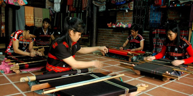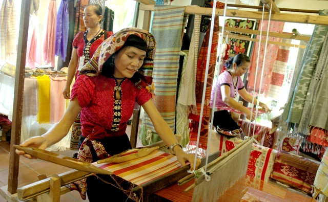 Thiếu nữ dân tộc Cà Tu, huyện Đông Giang (Quảng Nam) dệt thổ cẩm.